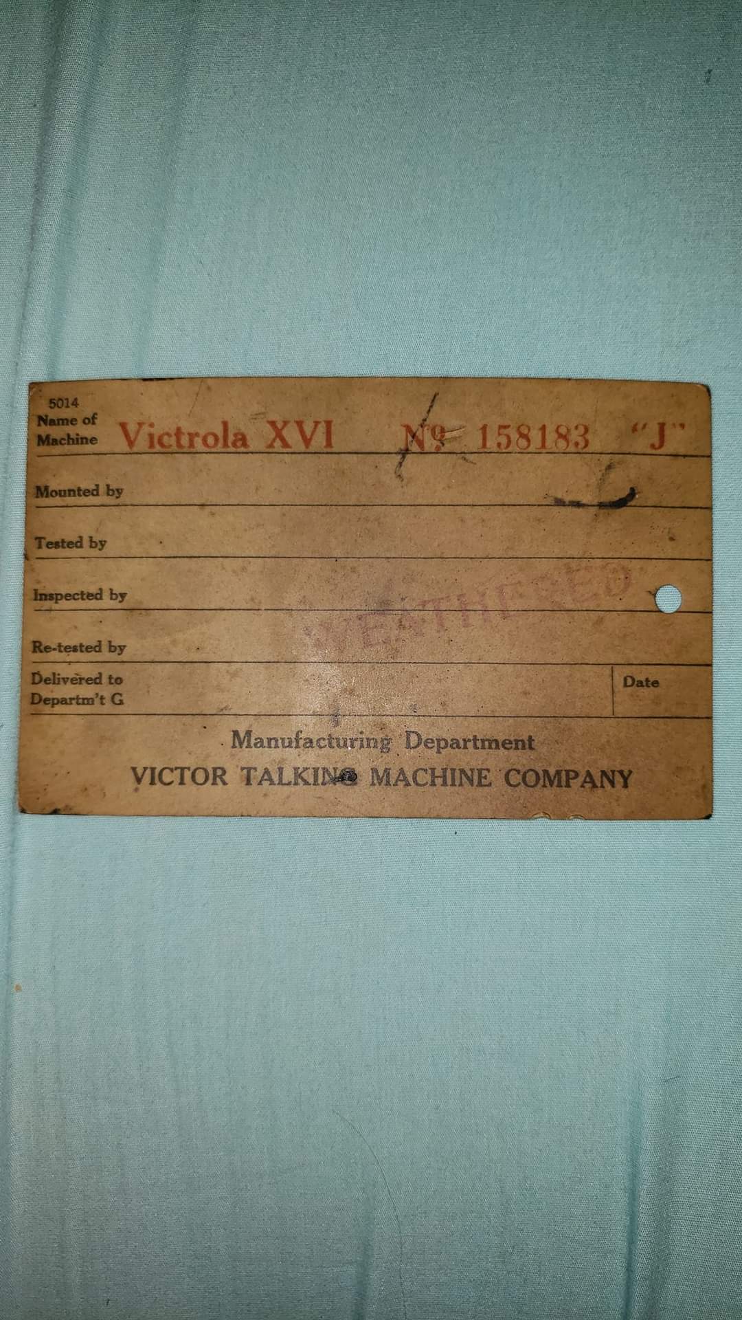 As a suggestion I would try to reach Paul Edie of the Victor-Victrola.com website. Paul has been collecting Victor machine data for more than 20 years and very well may have a record of VV-XVI with the serial number 158183.
