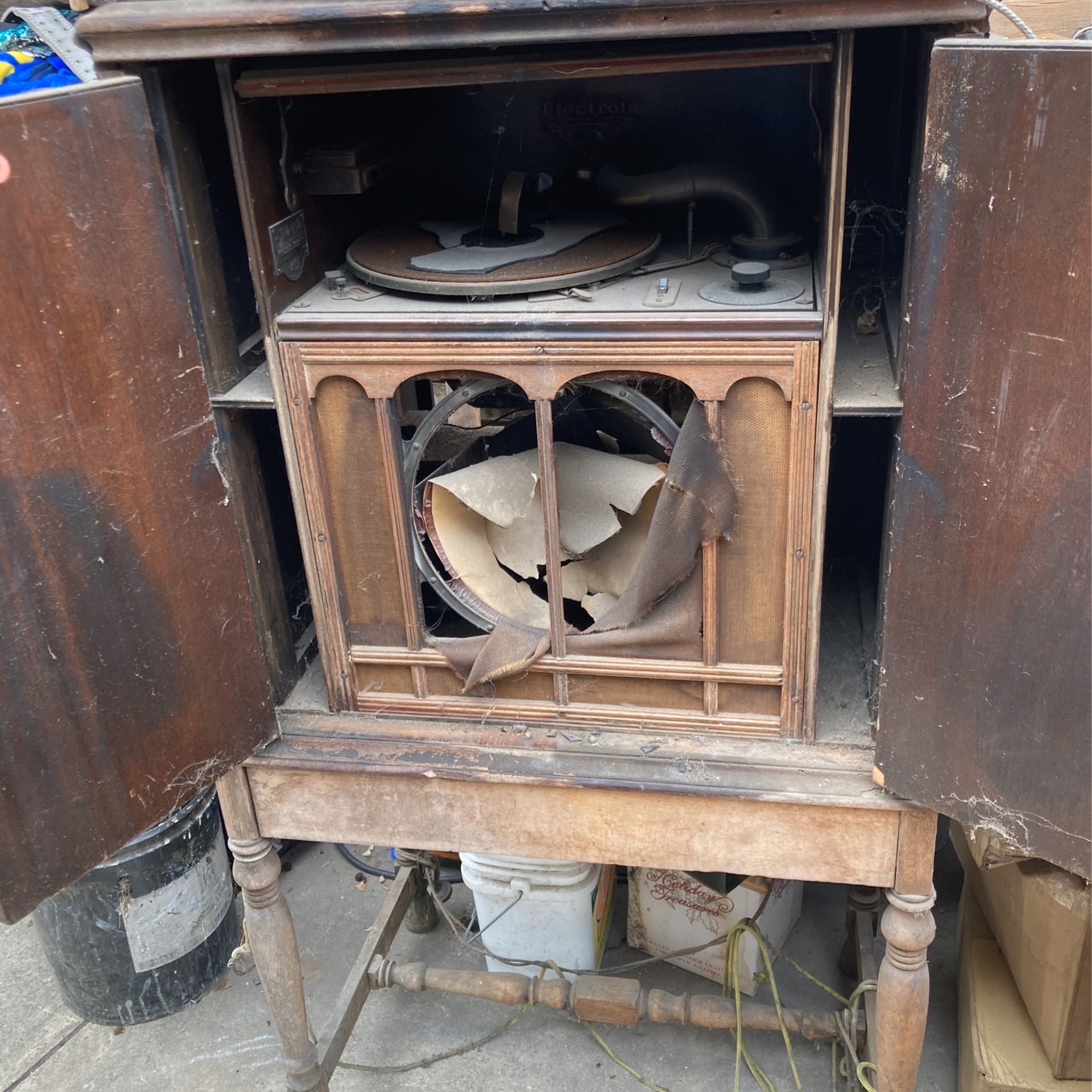 A someone appears to be giving away a Cromwell in Long Beach. Unfortunately it also appears to be in "free shape" but all the internal parts seem to be there. If someone wants a restoration project or needs parts for an early Electrola this could be a good deal.