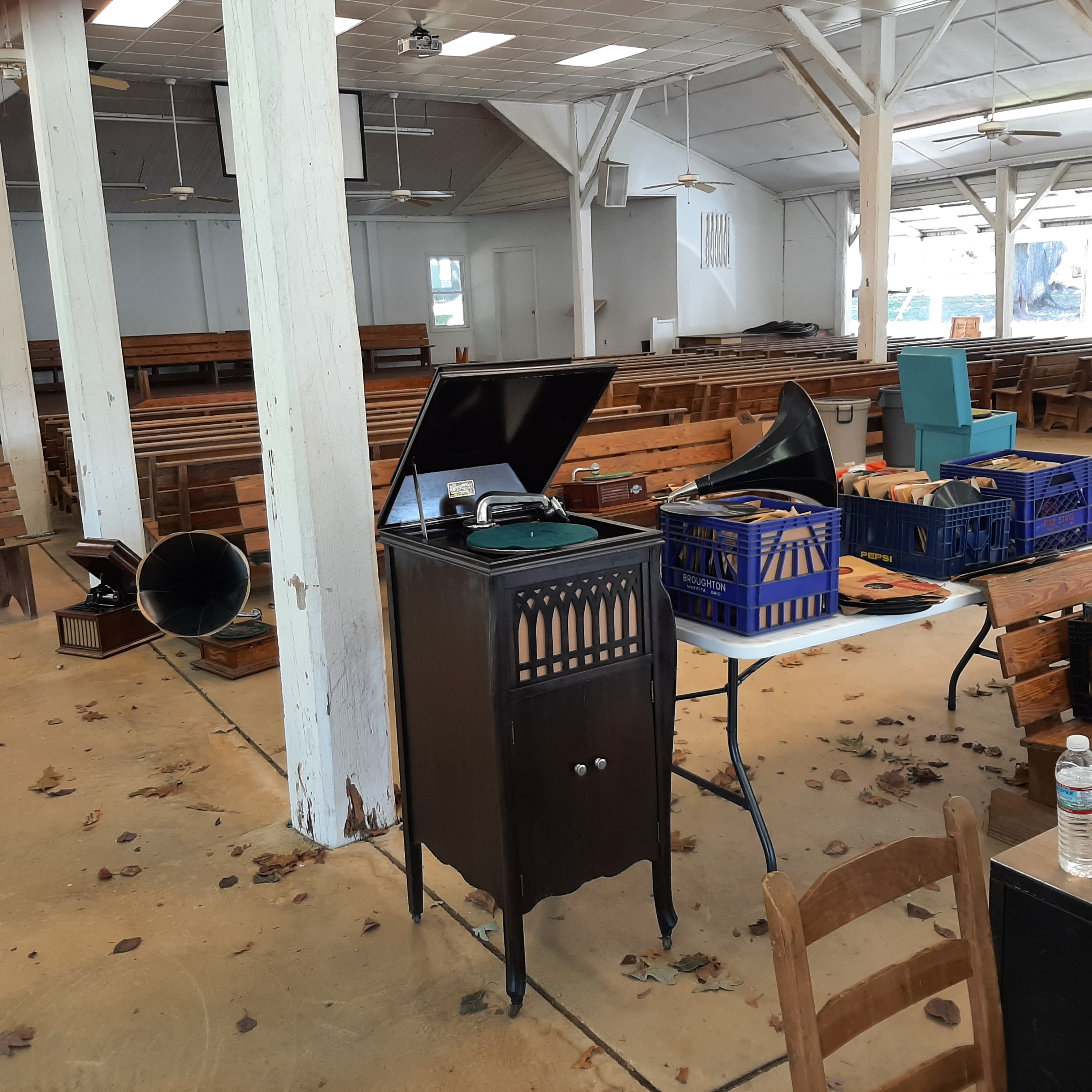 Opens at ten A.M. and goes to 3 P.M.-- that's five hours of antique phonographs, records, spare parts, that sort of thing.