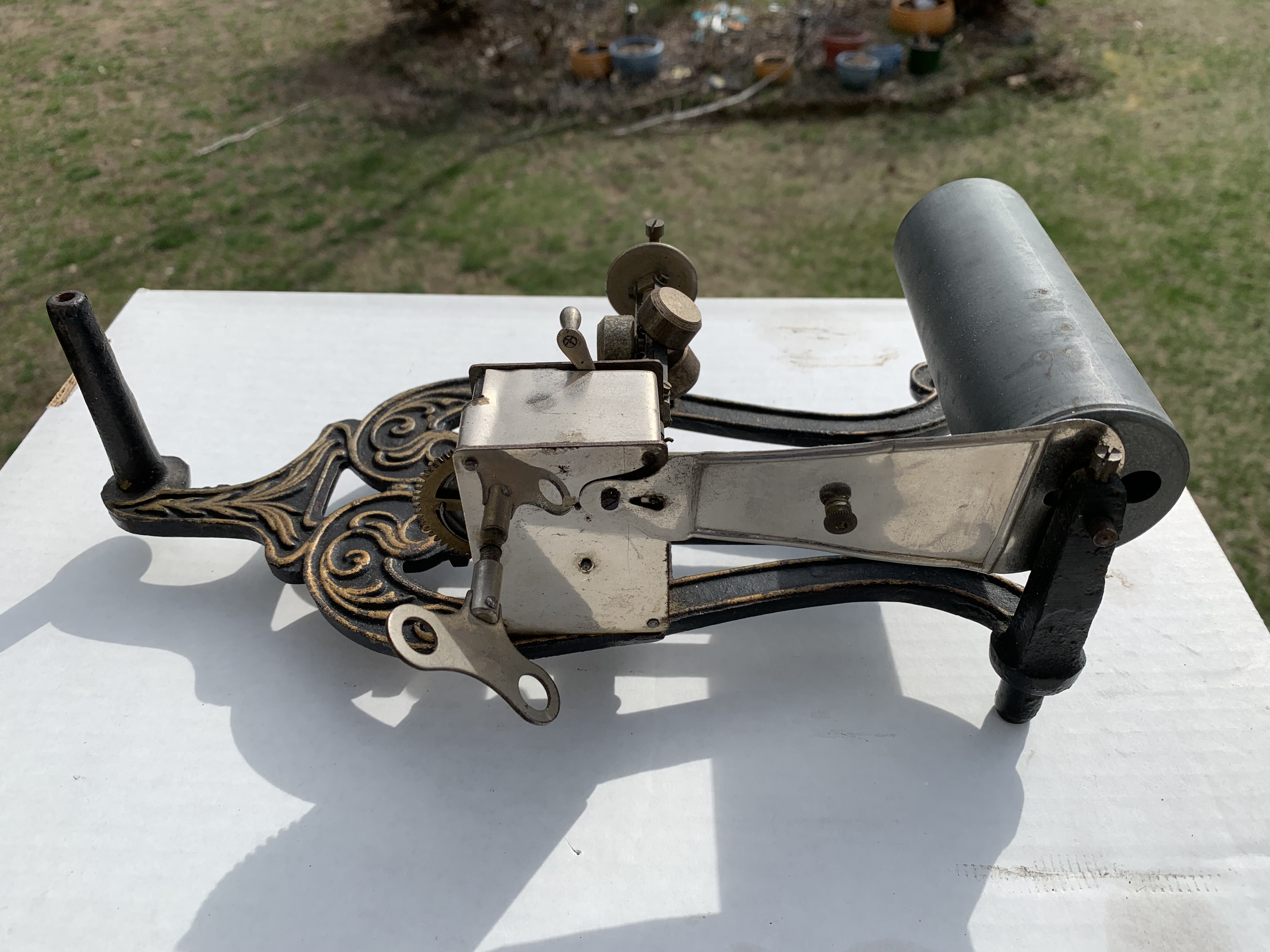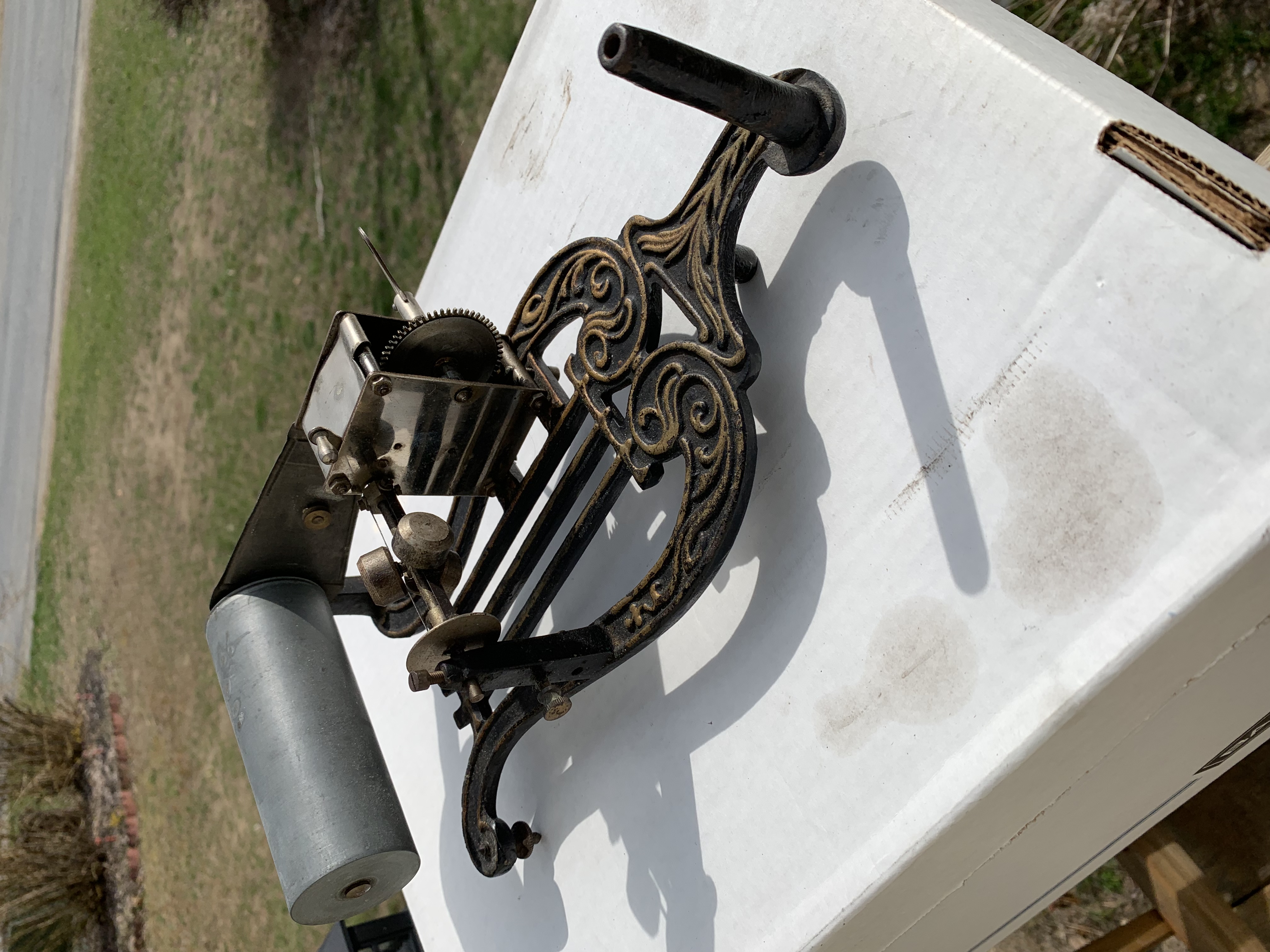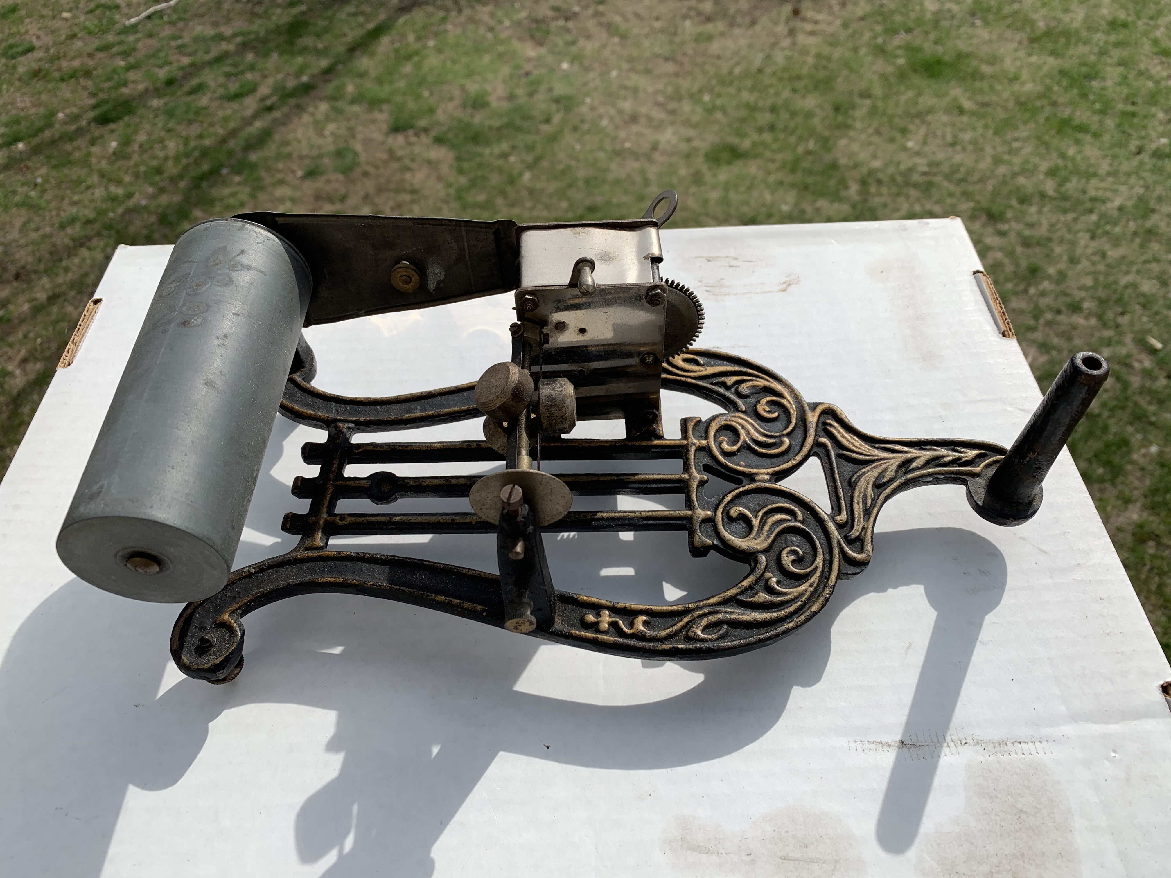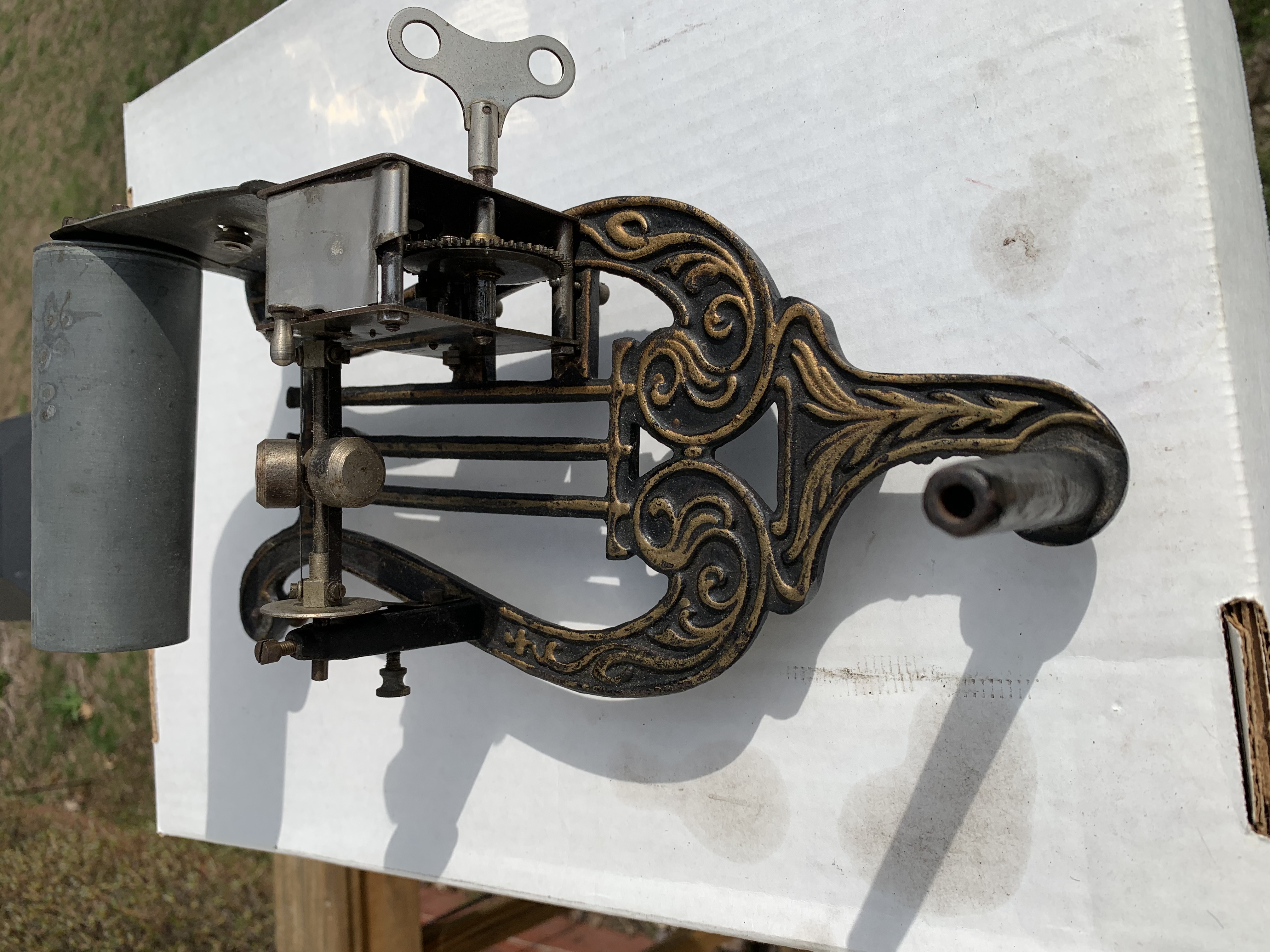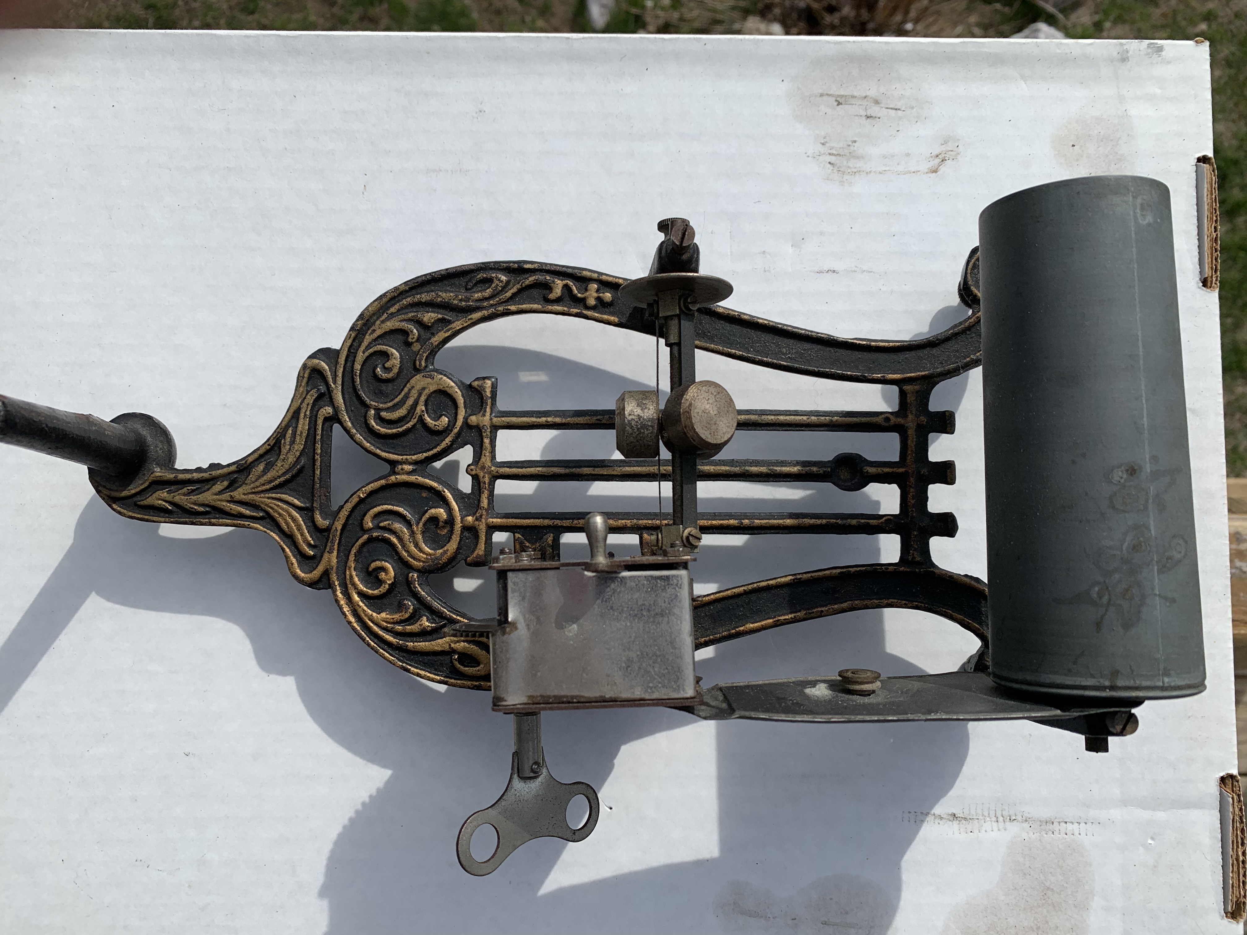 I guess I got lucky with mine, as I found not only the name of the toy co that made it, but also original ads showing a variety of horns choices, their prices, and even the catalogue/model number of my machine and horn combination.