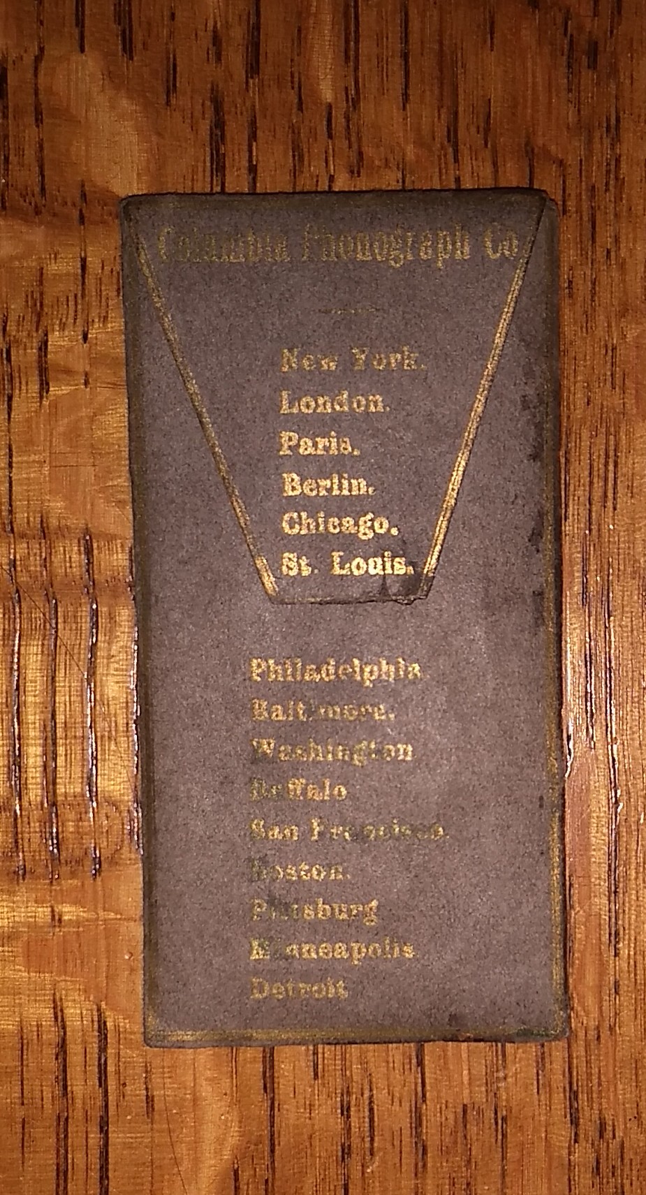 I have been collecting phonographs since 1991. My wife also jumped in collecting Nipper items and needle tins and packets. I recently bought an old collection of items. There were three of these early packets. I'm only selling one. I've never seen another and (No BS) saying that. It's gray paper with gold colored print. The price is $45 with additional actual shipping from zip 37076. If interested send me a private message. If you would like to buy it, please reply to this ad with "Sold" and send me your contact info. to calculate shipping charges. No Paypal, a check will work just fine. The price will not be reduced in time, I'll just tuck it into the collection.