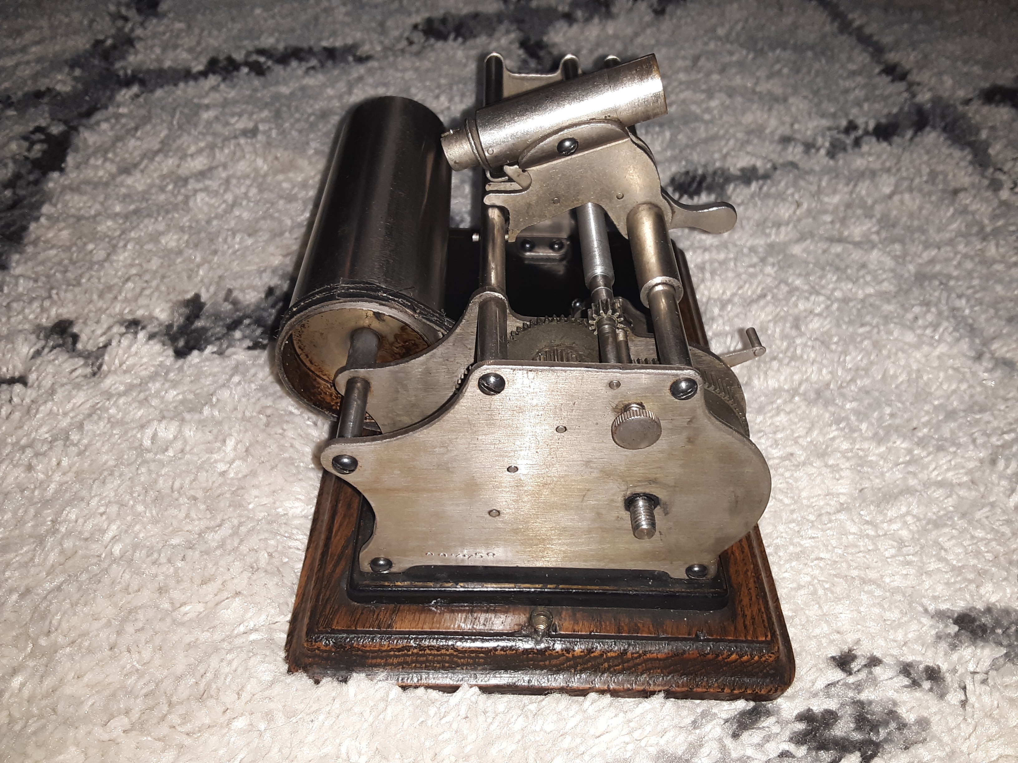 The reproducer looks to be in good shape and has its original box. The motor runs nice and smooth and the spring is very strong.