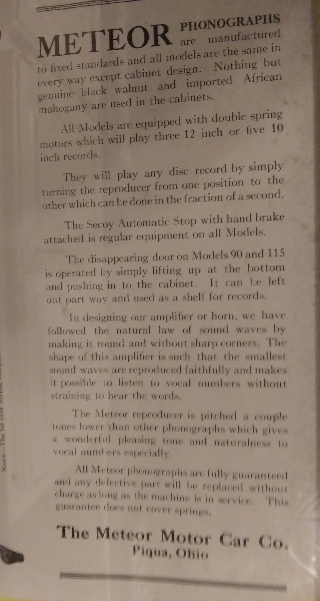 And another Meteor phonograph ----different model then the other 3---overpriced in Perryville, Ohio. but to a meteor collector, can probably talk price. It is a different model and looks interesting.