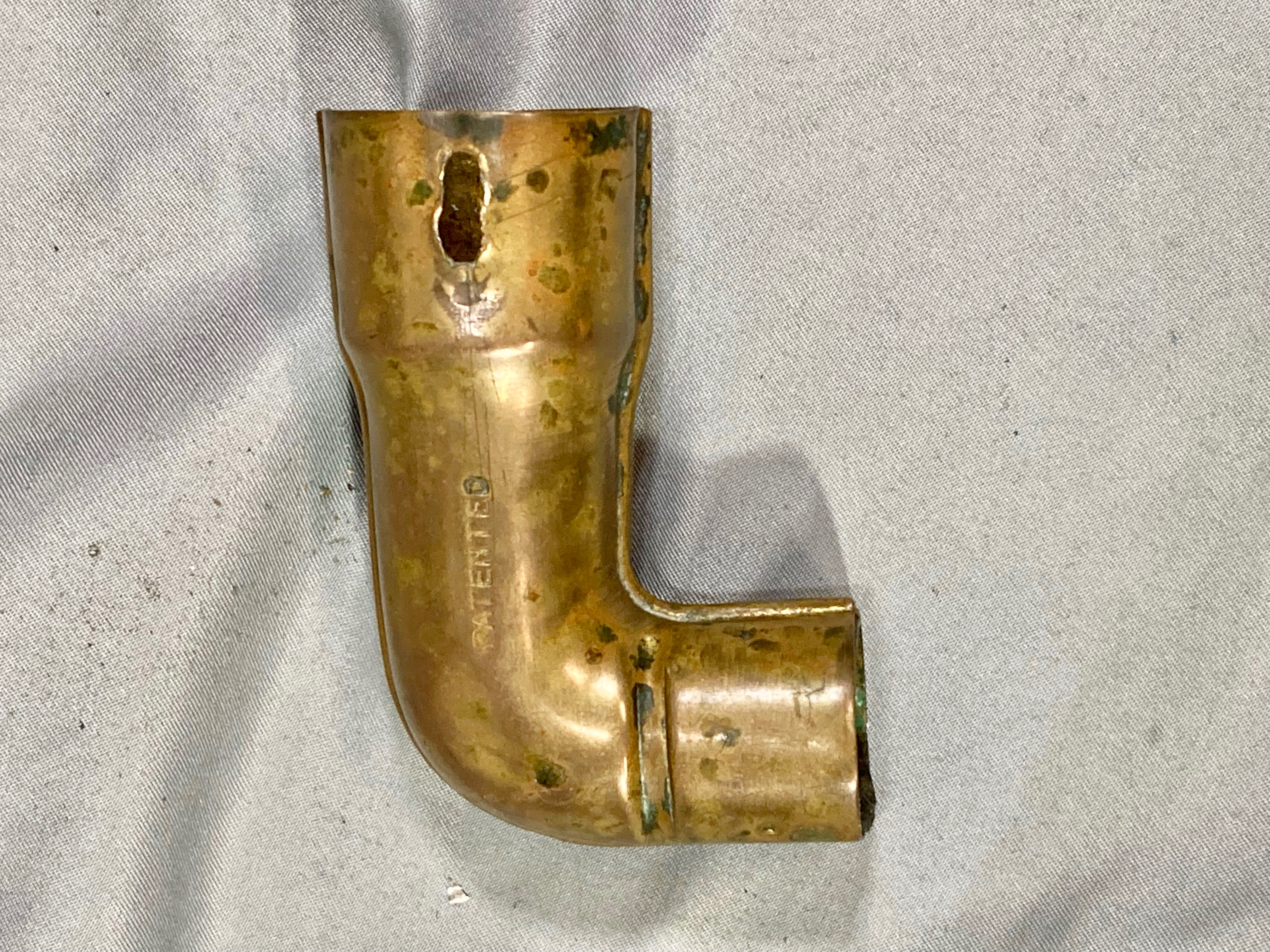 An original Columbia front mount horn elbow, no splits, missing screw.