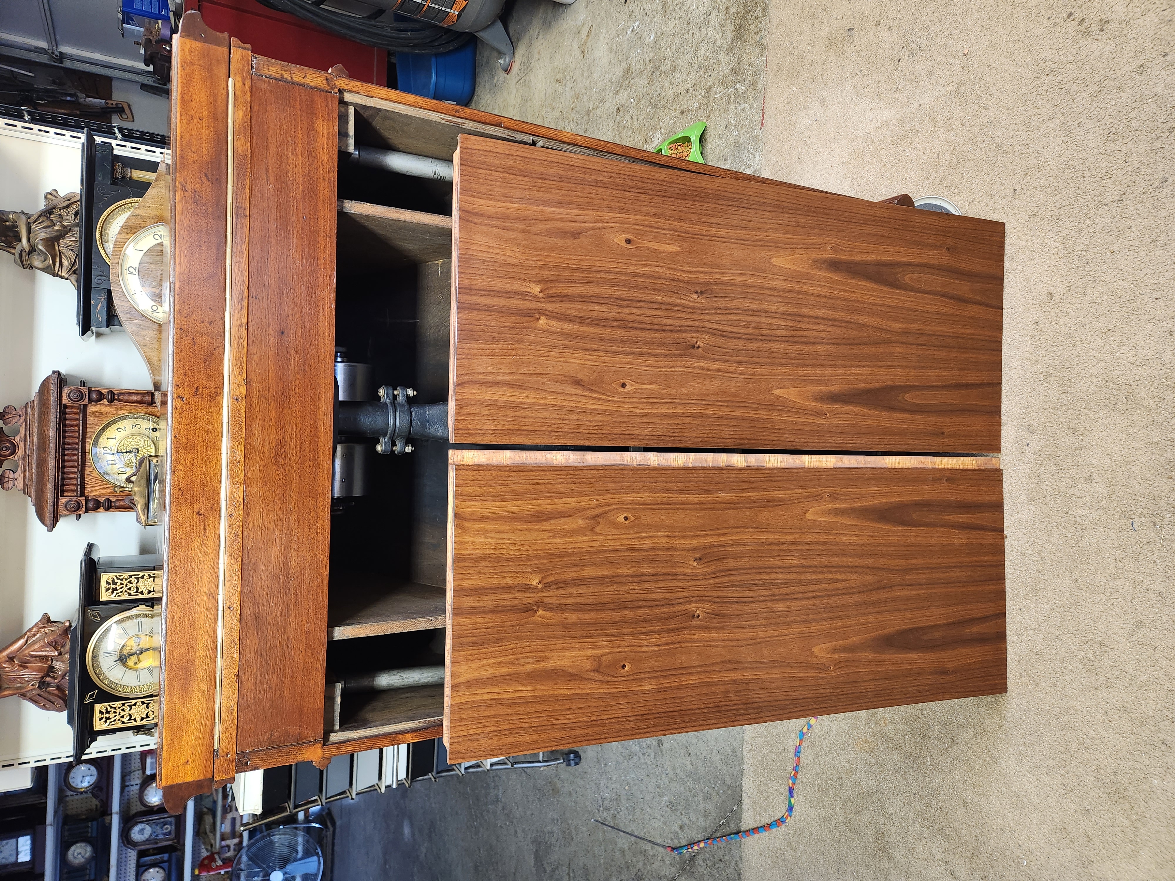 The wood work is now complete and I don't have but a few things left to do. A couple motor mounting screws and a door knob for the front and finally a crank to replace the one I fab'd up to hear it play. It has taken about 7 months but I like were I am at on this rescue.-