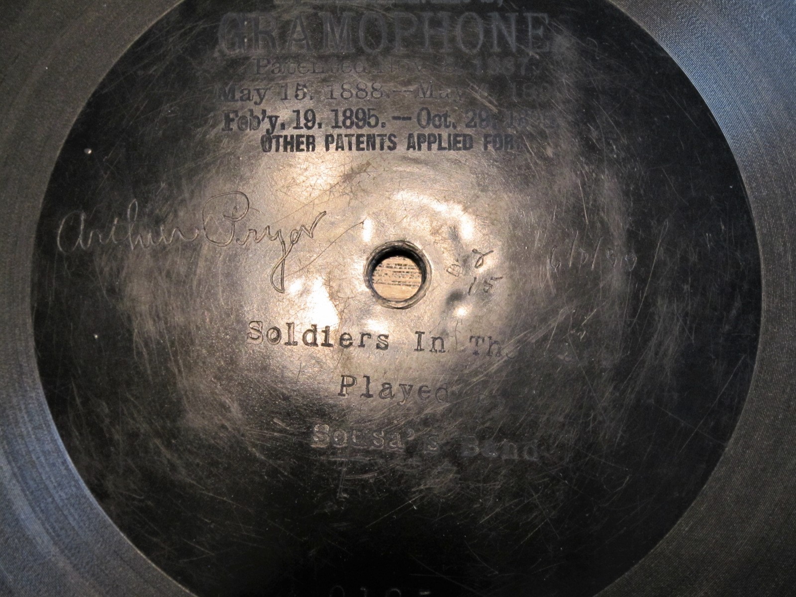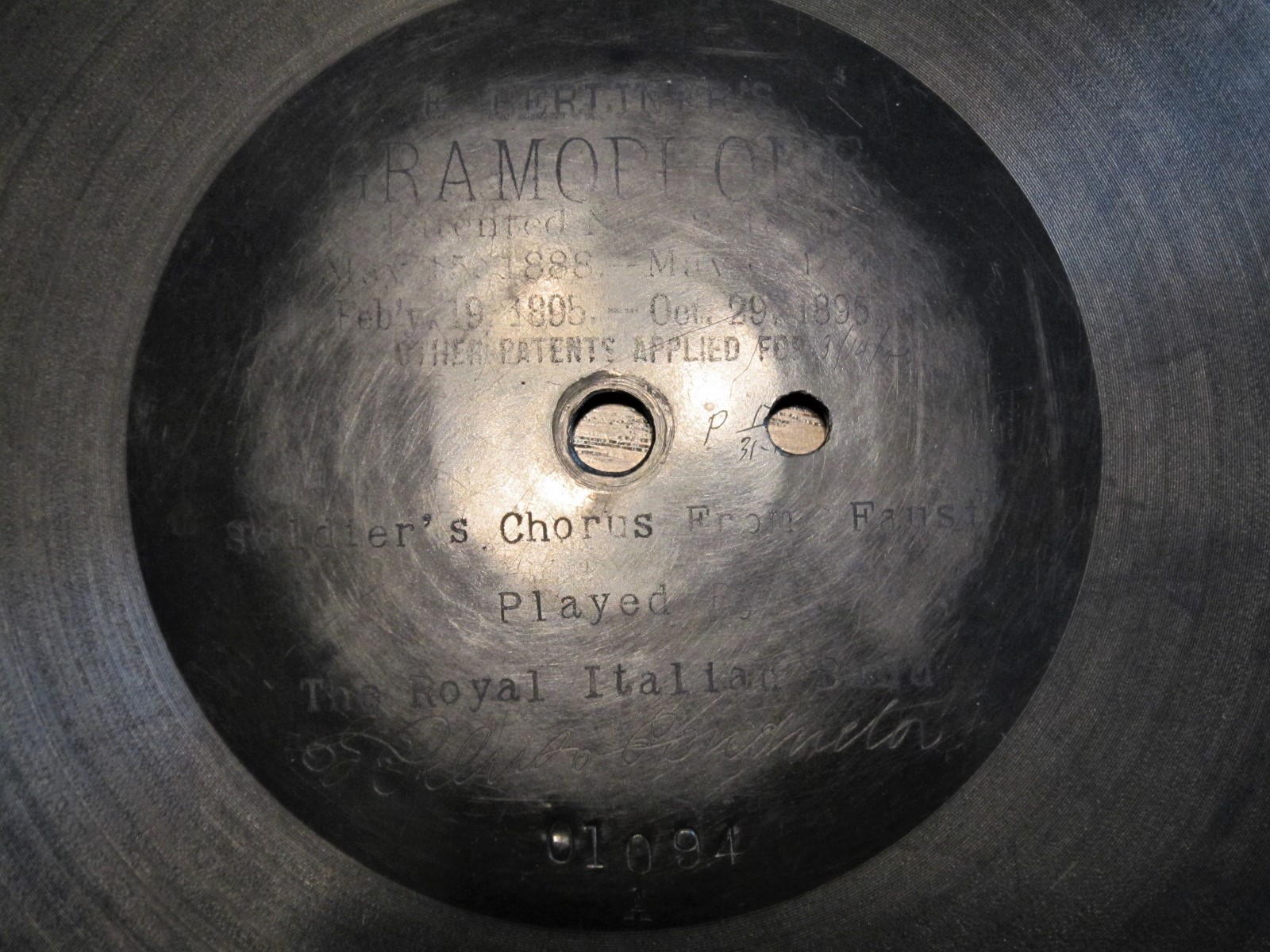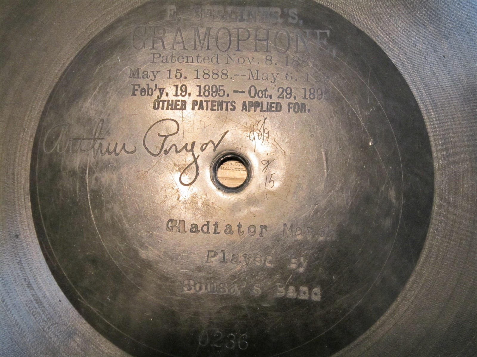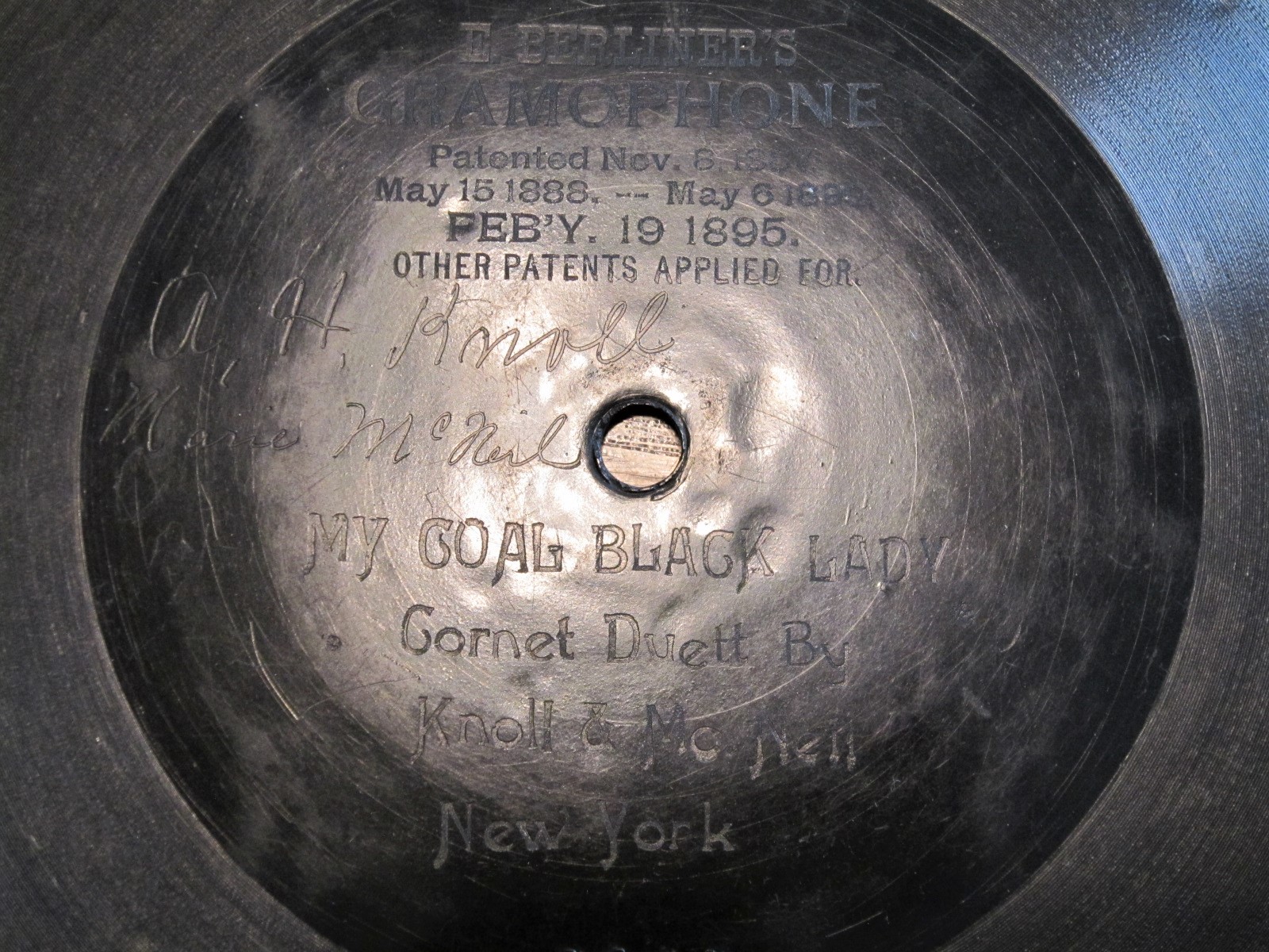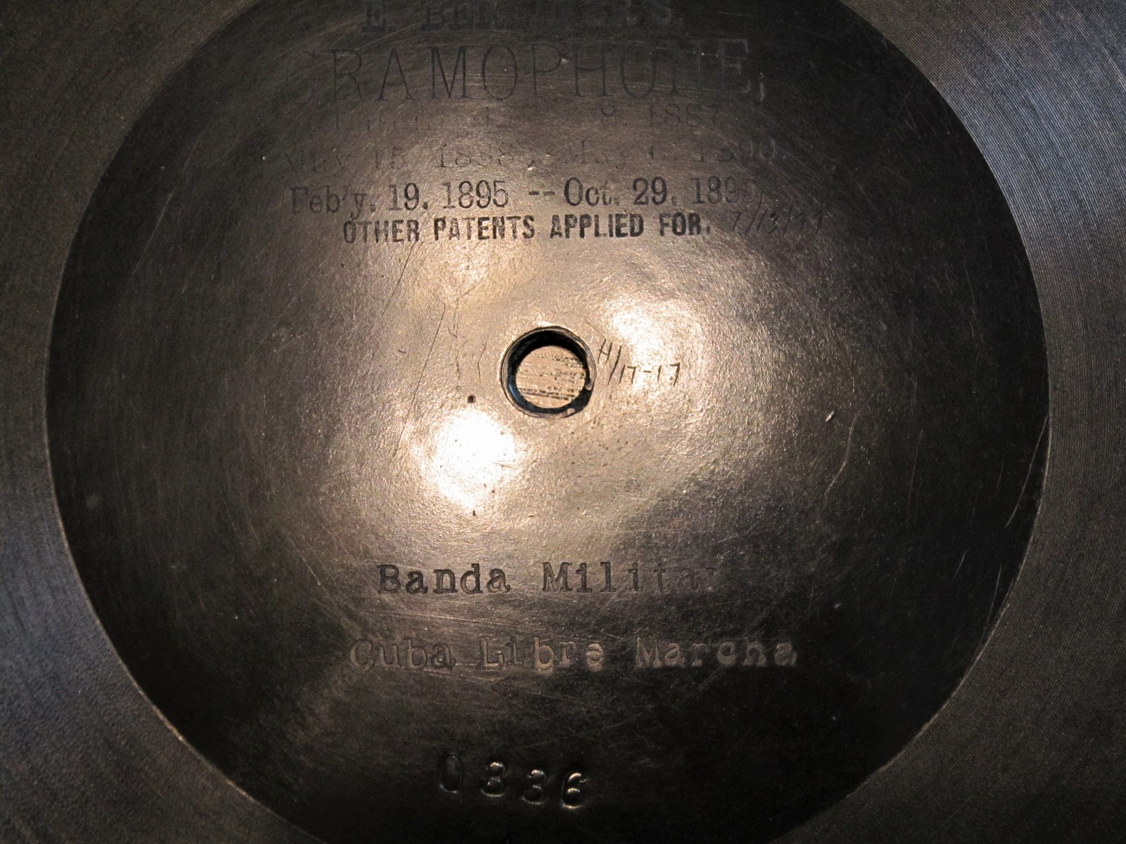 This issue of "Blue Bells Of Scotland" was first released in the US (August 31 1897). The original US cat number (3312) is effaced under the later added (1900) Canadian patent information. A new Canadian cat number (355) was added on the right. Also, four HMV logos were added into the sound grooves when re-pressed in Canada.gramophone-georg wrote: Sat Aug 21, 2021 10:28 pmAAAAAHHHH!I have been looking for any copy of that forever! Didn't realize it was first done on Berliner- very cool!