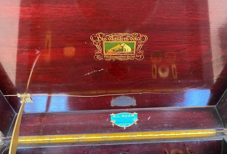 Re-motored by courtesy of Garrard, and for some unknown reason wearing the much earlier HMV "Scroll" pattern lid transfer.