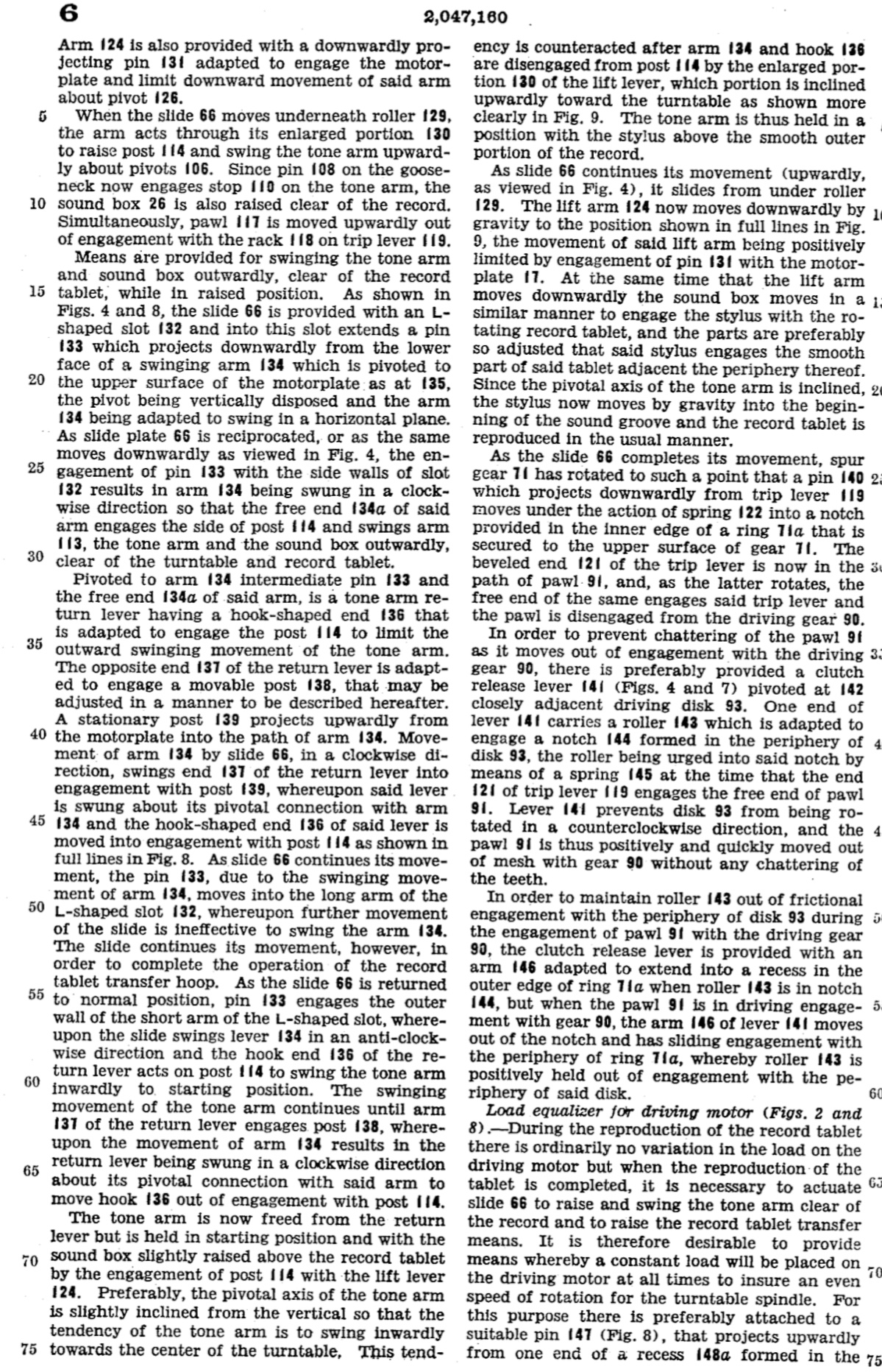 The exact replica 10-50 changer parts which we are about to introduce are a partial result of this patent. The drawings are highly detailed and are likely the engineering drawings produced by Victor. Like most or all patent drawings they are designed to illustrate the patentable feature and contain no dimensions. Comparison with existing parts to figure out dimensions was not much help likely because of changes during duplication or printing. Still, the drawings provided some valuable clues which lead to ultimate success in producing the replacement parts.