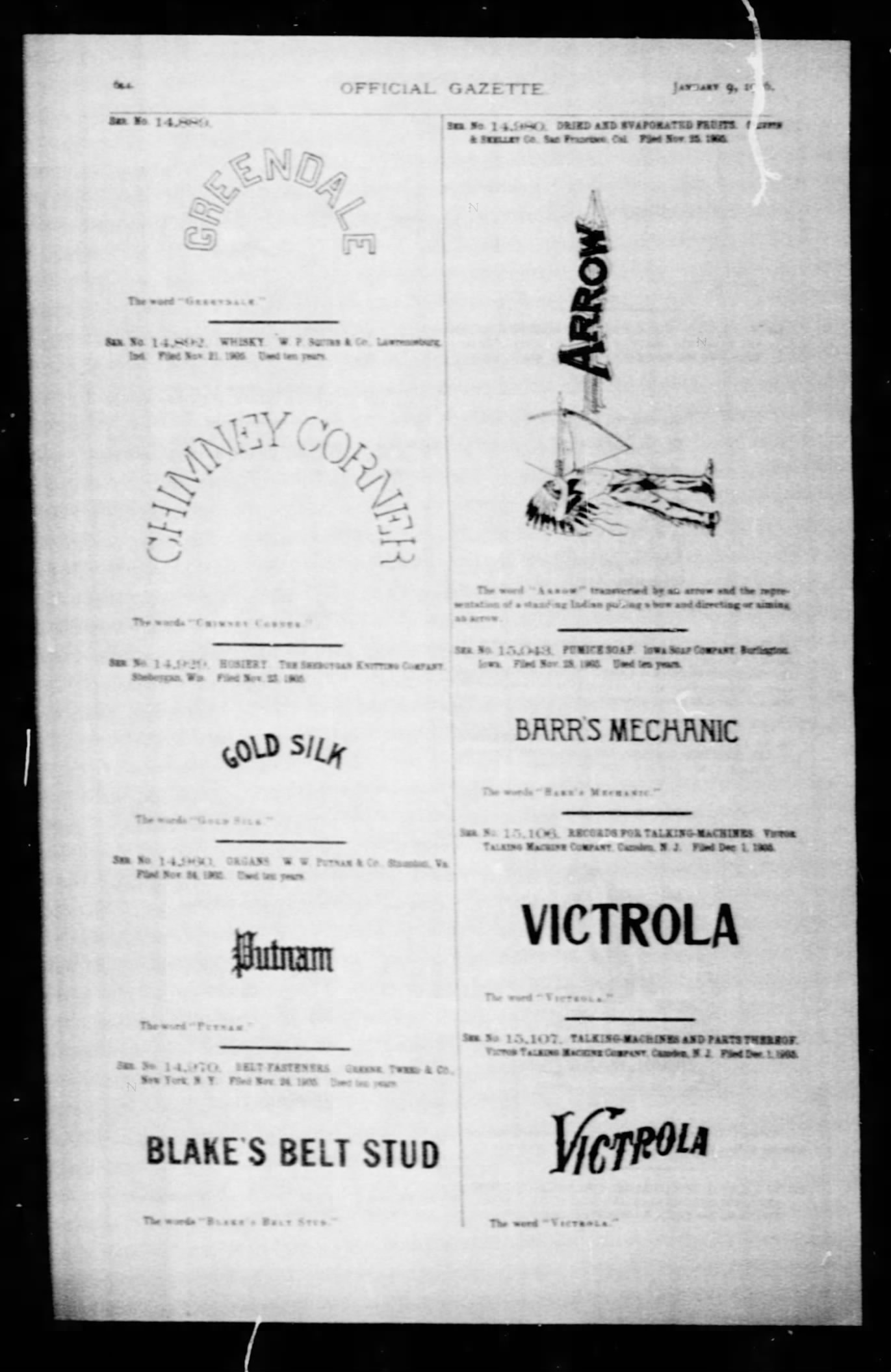 January 9th 1906: the patent and logos for the Victrola were granted.