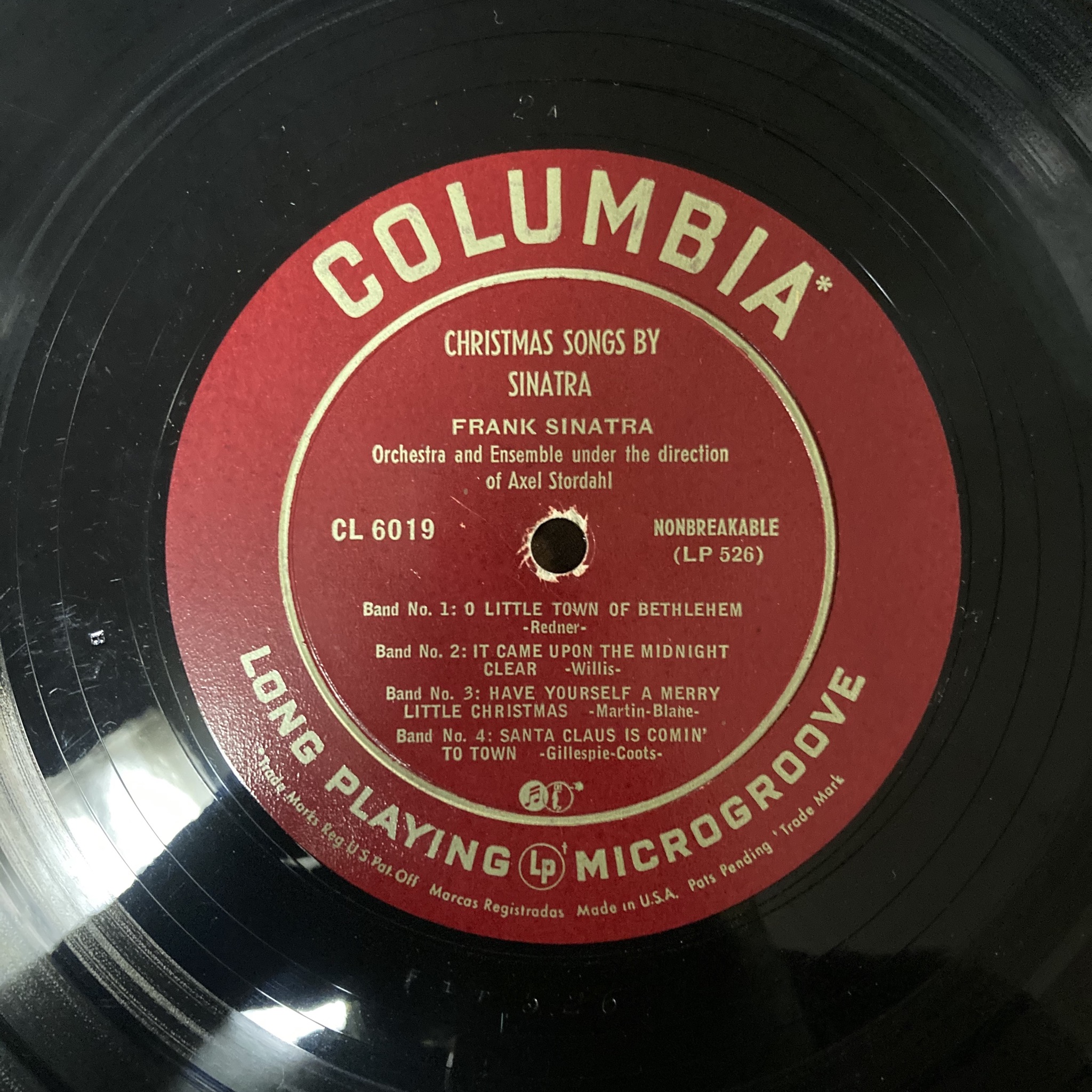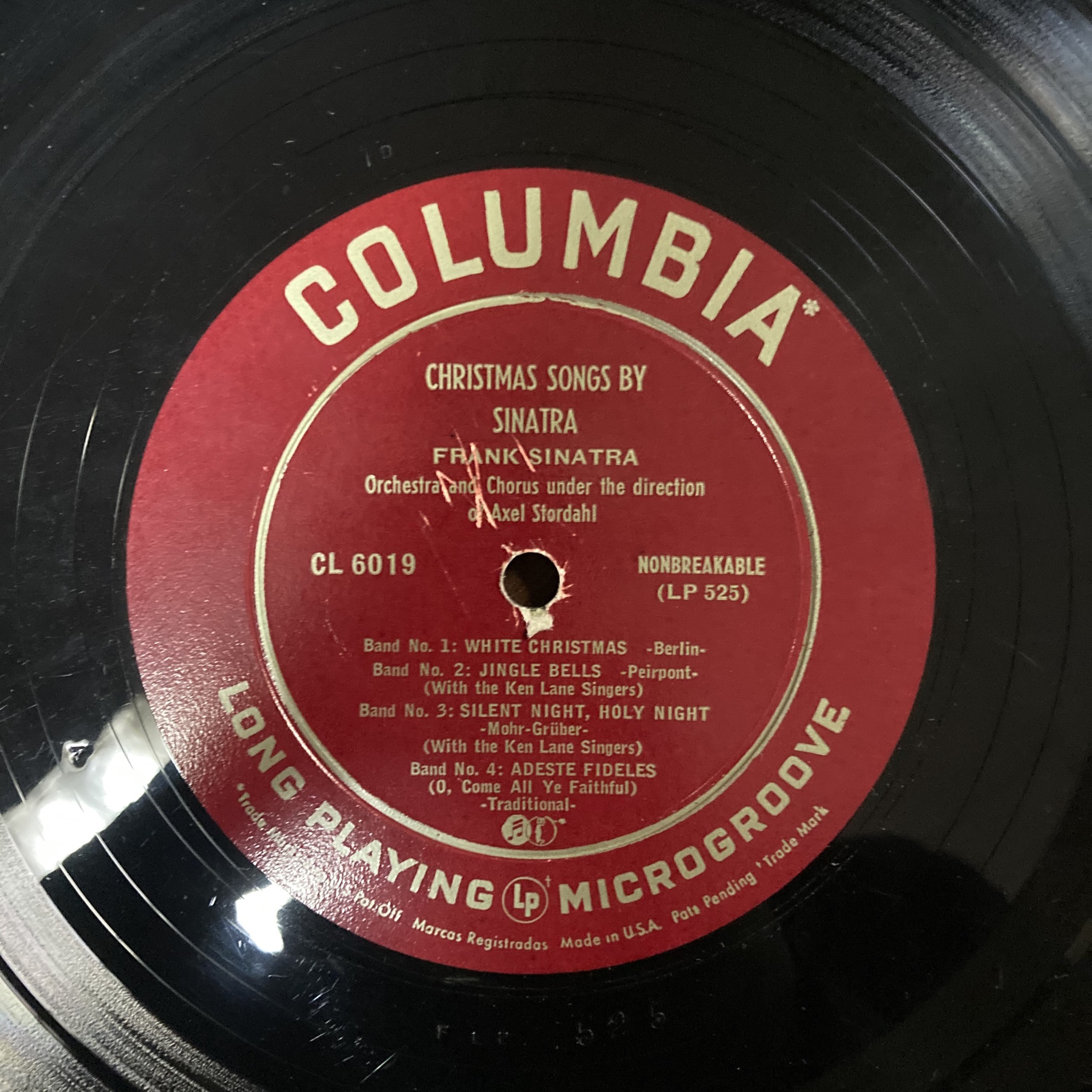 Here is a nice skip-less copy of a scarce early LP, Columbia catalog number 6019, Christmas Songs By Sinatra, 1948. Offered to forum folks at a fraction of what one would pay elsewhere, this is the LP issue of the 78 album of the same name and song sequence.