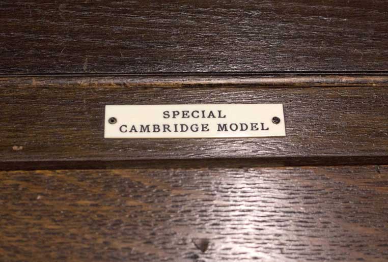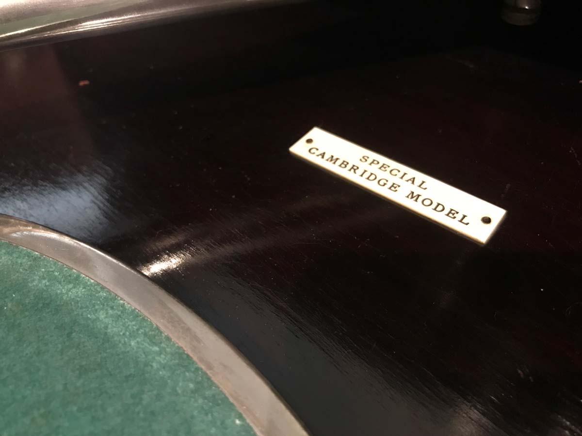 I had heard of the existence of the Special Cambridge Model but the only reference to it came from a page on the National Museums Scotland’s website. It’s an E.M.G Mk VII in Oak. I contacted the museum and they very kingly sent me pictures of the plaque confirming its existence.