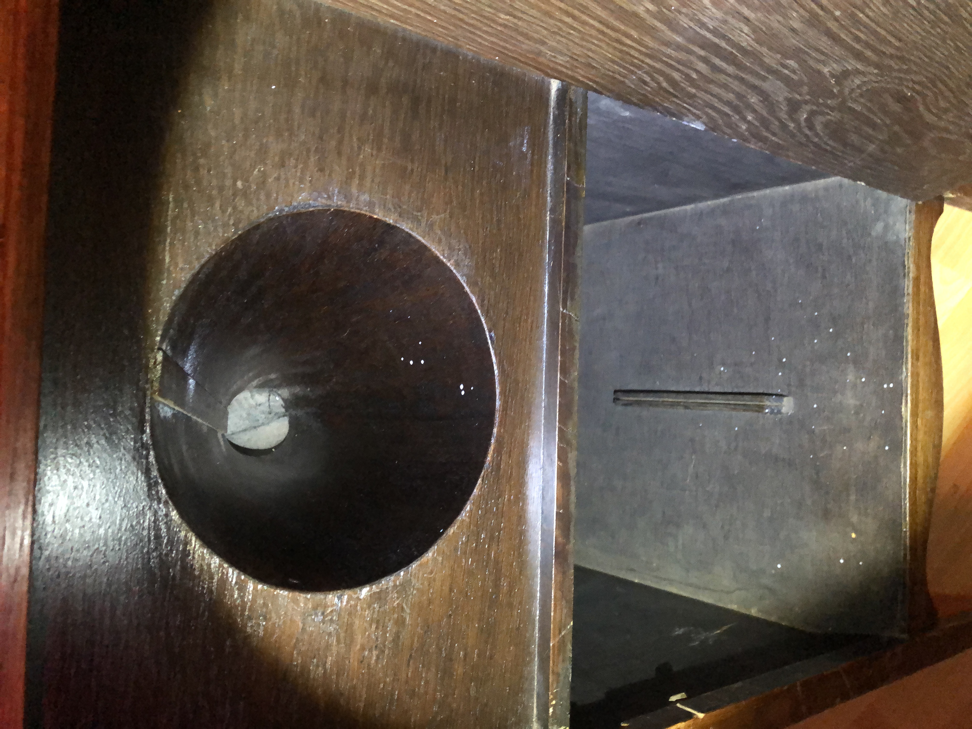 At some point it has lost the oval frame around the funnel and the speaker cloth looks like it was cut out of some girls knickers, I will be replacing it with something more appropriate.
