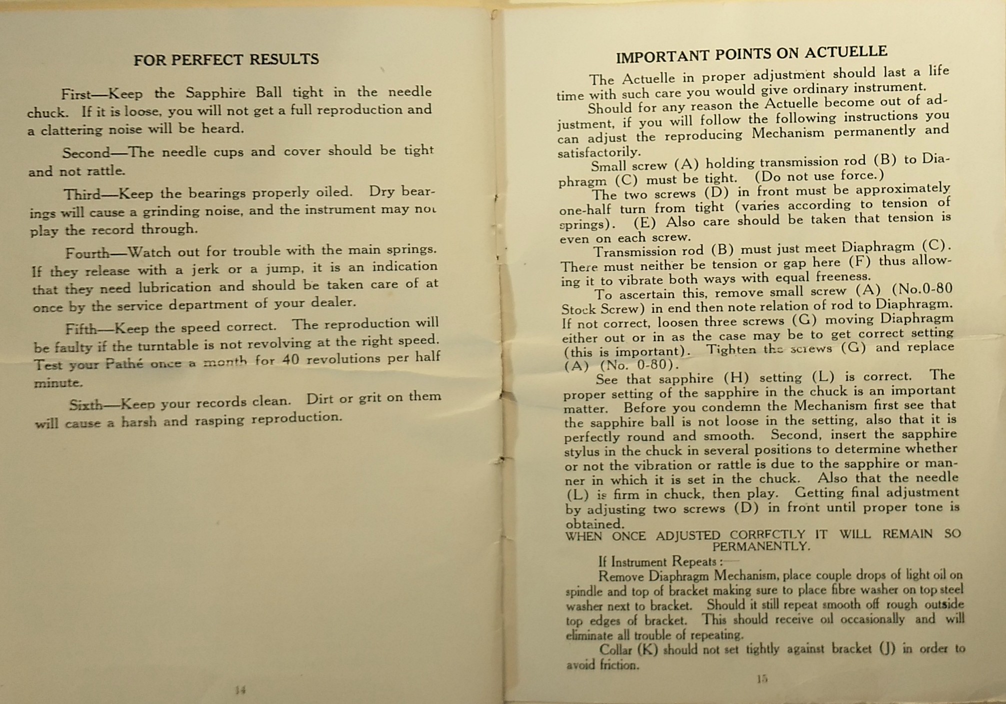 Great info. --- thanks for posting this. I just shared the Actuelle instuctions info from Ron D.s book yesterday with another collector who is getting his first Actuelle. Your post will certainly be of great help to others!