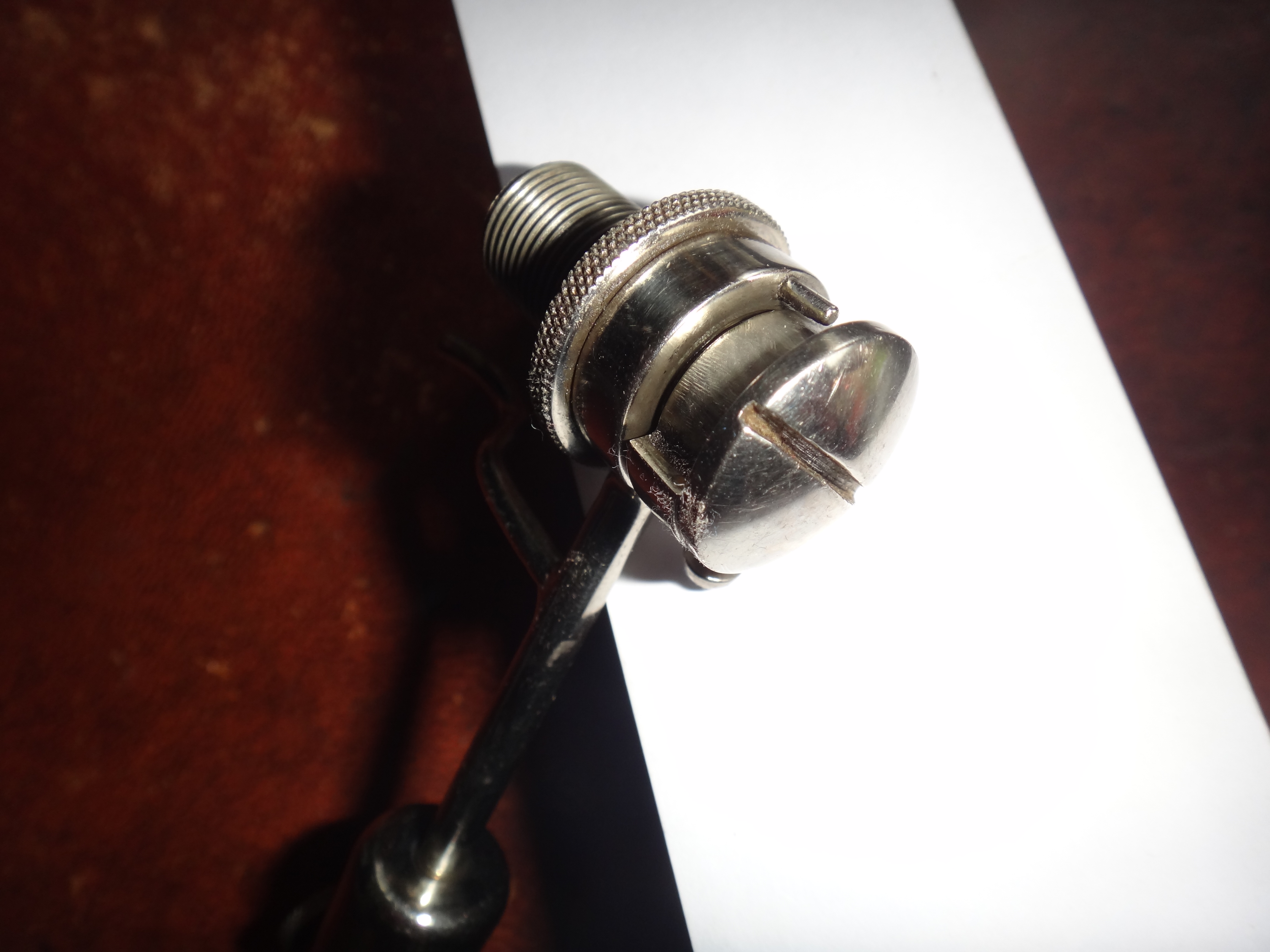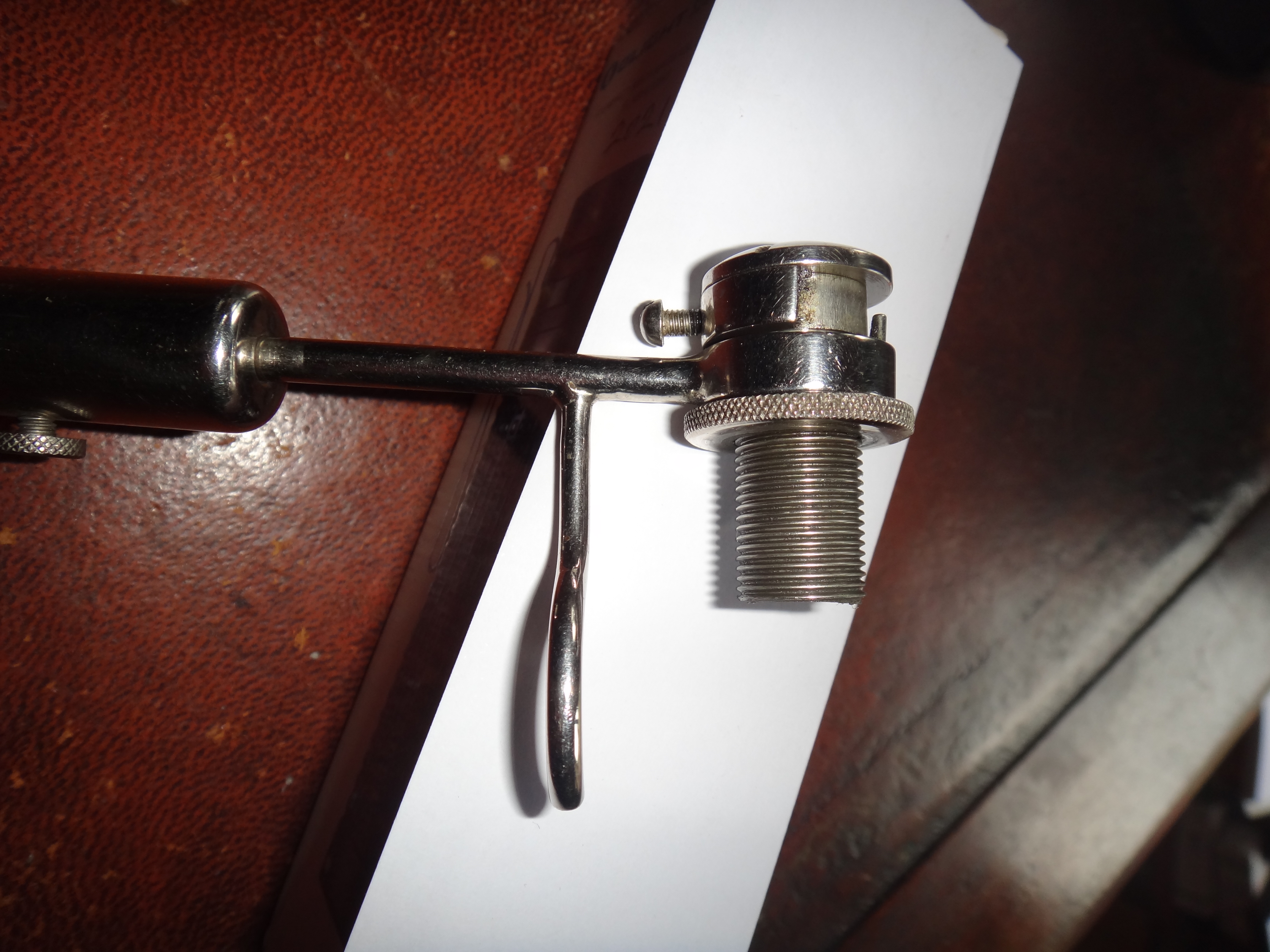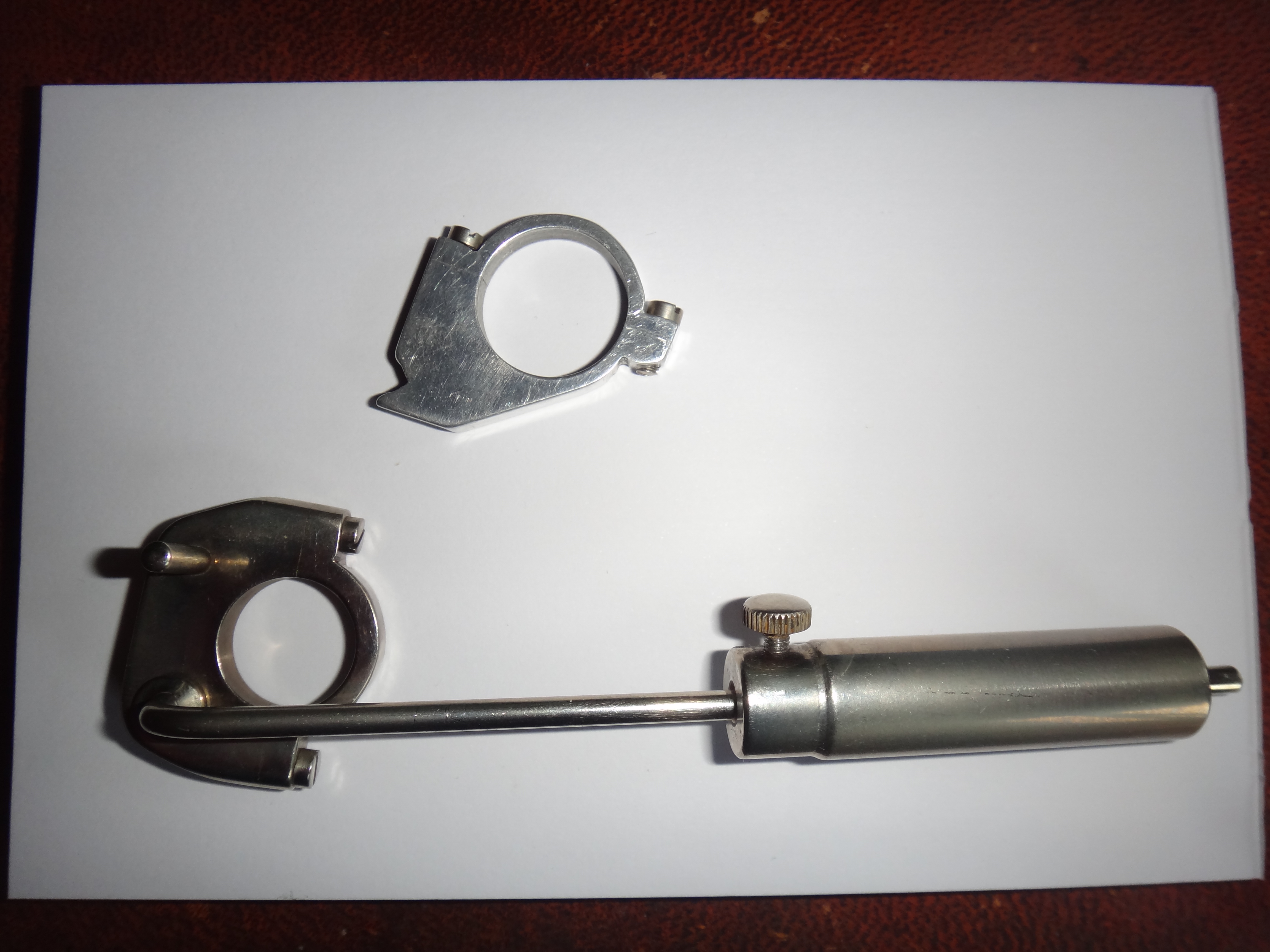 The knurled ring is thread so that it screws onto the Quincke plug and I turned up a fitted washer so that the counterbalance arm rests in the horizontal position when in use. The rod itself slots into a hole drilled through the lower part of the knurled ring.
