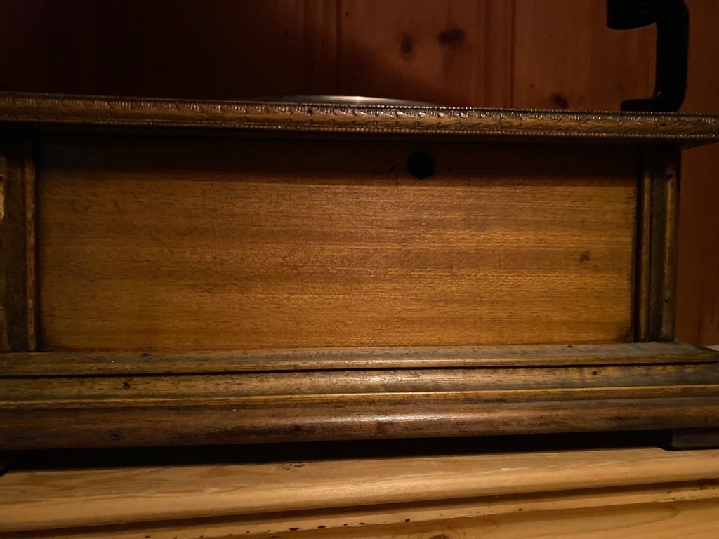 You can’t complain if it’s free it’s just the petrol to be considered. Personally I think the case is made up as it appears to be made from different woods. The top board looks like oak from above and rather like walnut from below on the unstained side. The outside of the side panels are mahogany and definitely a different wood.