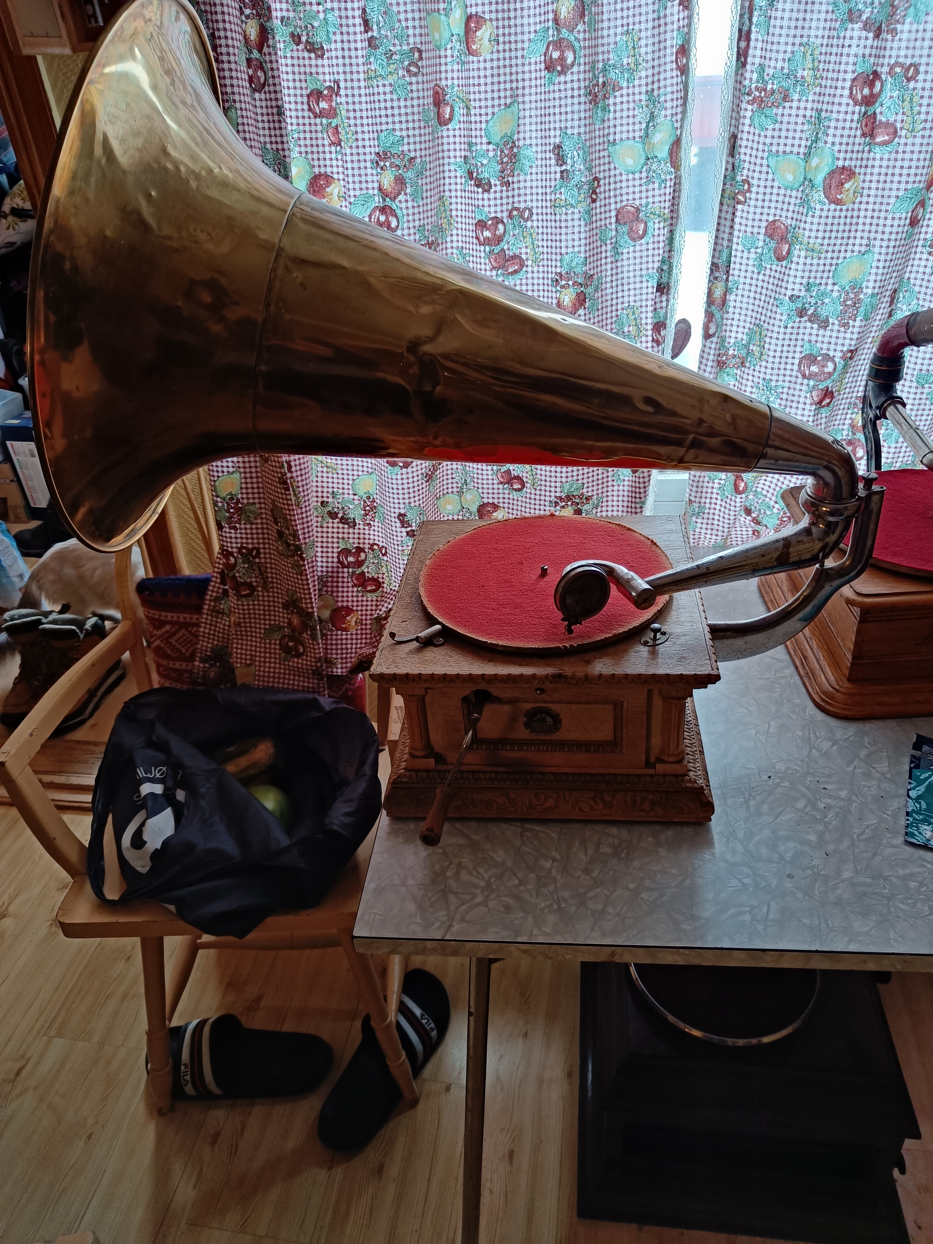 Talking about price paid, to not reveal it completely here, I can say I paid 10% of the same machine now being sold on Ebay UK, apart from the fact that the machine on Ebay has its winding handle, has a wooden horn, but also is a single spring machine ;)