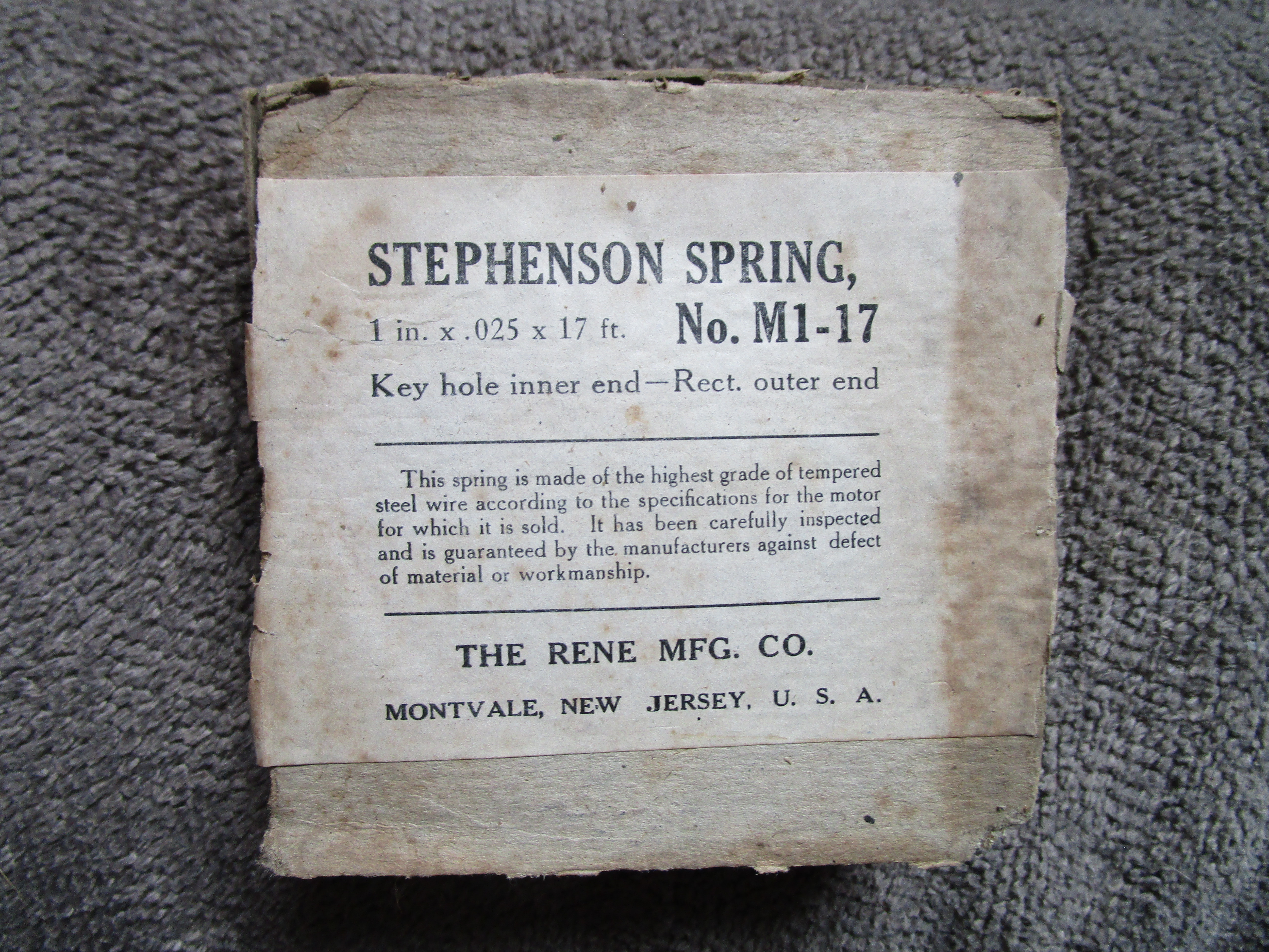 9. [SOLD] Unusual Original Stevenson Spring in its original box - Lid is loose - box is rough - display only as main spring is REALLY old and oxidized - Only example I have EVER found of this one - $25