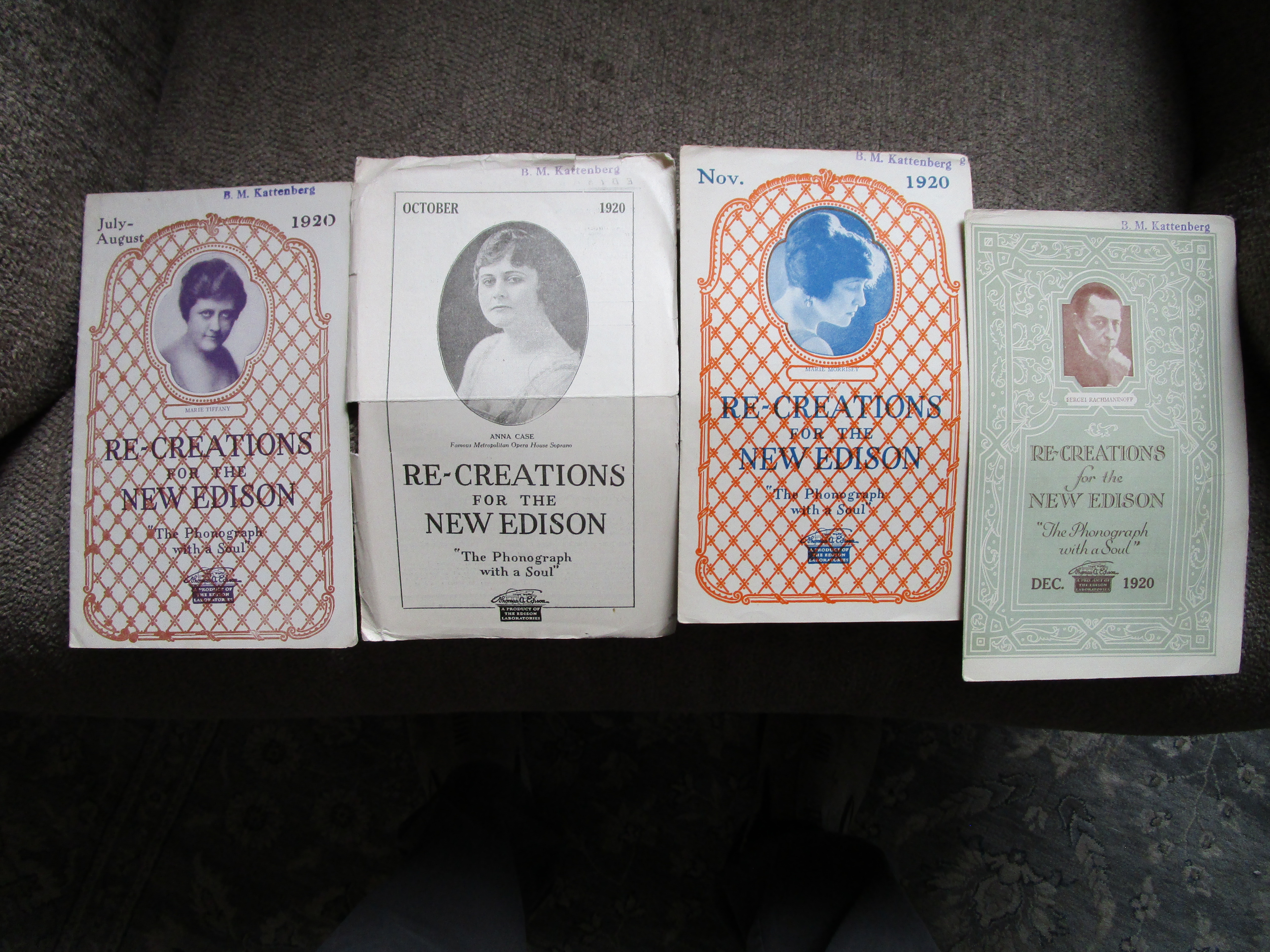 6. Original 1920 ENTIRE YEAR SET (well, almost...only missing Sep 1920) of "Re-Creations For The New Edison" - Lots of GREAT information and artist pictures in these - $80 for the ENTIRE SET