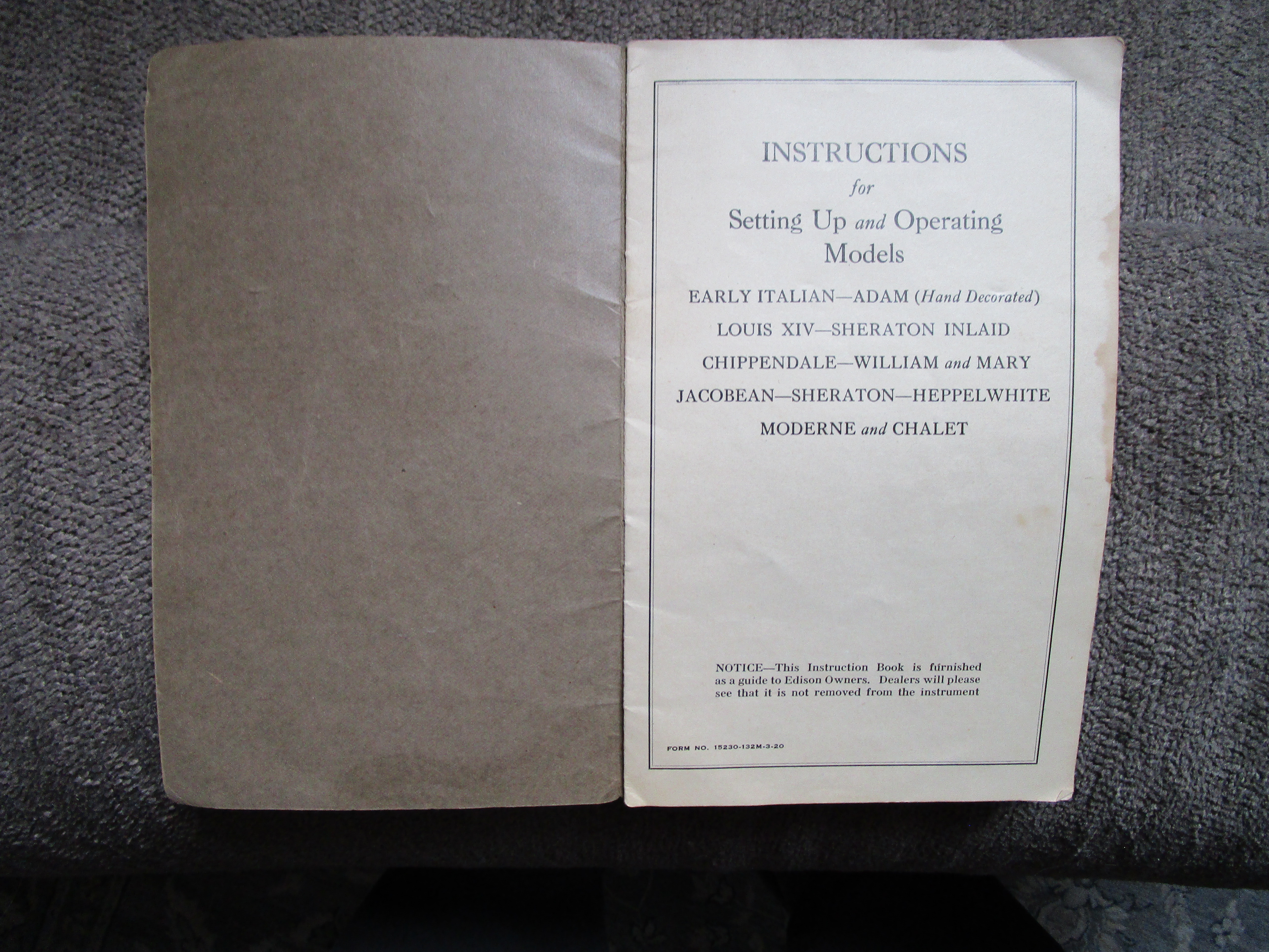4. Original Edison Diamond Disc Phonograph Manual - $25