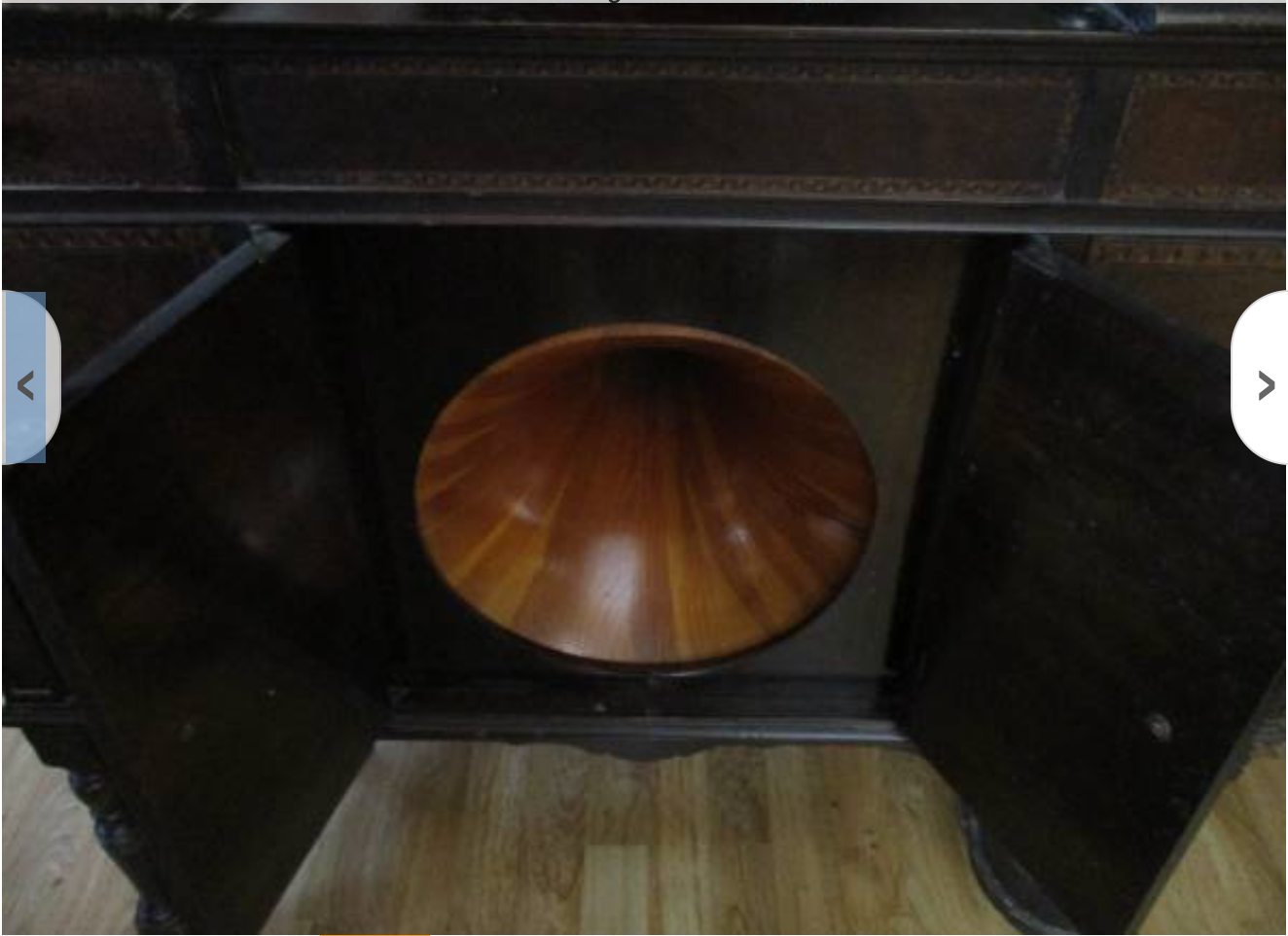 Well, I guess we'll have to wait til someone knows the correct answer. At first the horn gives the impression of an Emerson. The only center lid model that I have in an original catalog and own is either--- The Burgundy which I believe was the renamed in place of The Louis XV, when the company was sold. I have not seen a tonearm like that either on any Emerson I have in the collection. A gentleman around Pittsburg, Pa. had a gutted Strand cabinet on market place----identical to the Emerson Sheraton model (which I need tracings of the grill) he would not help with tracings even when offered payment and has not answered any messages. So how many Emerson machines are out there that are under a different manufacturer and renamed? Hope time will give the answer.