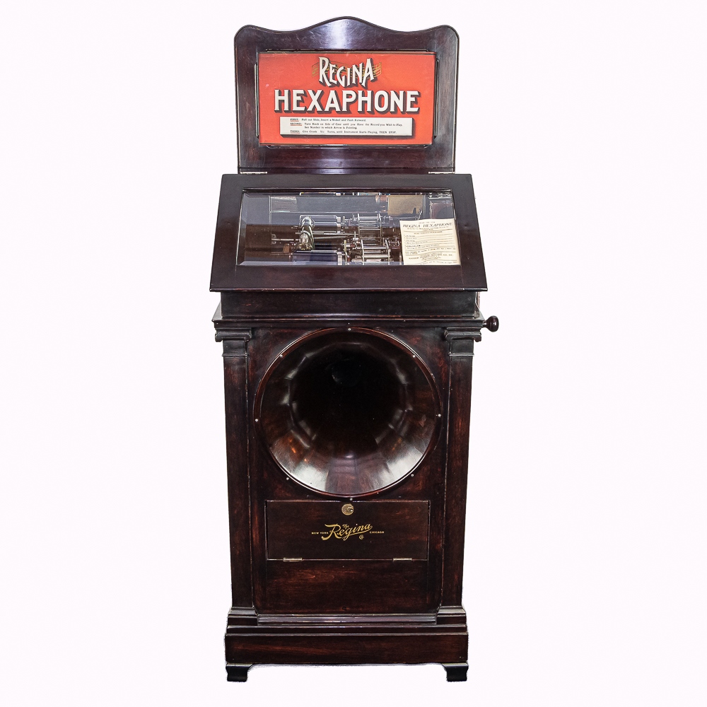 Lot #1080 - Mahogany Model102 Regina Hexaphone Coin Op Jukebox
