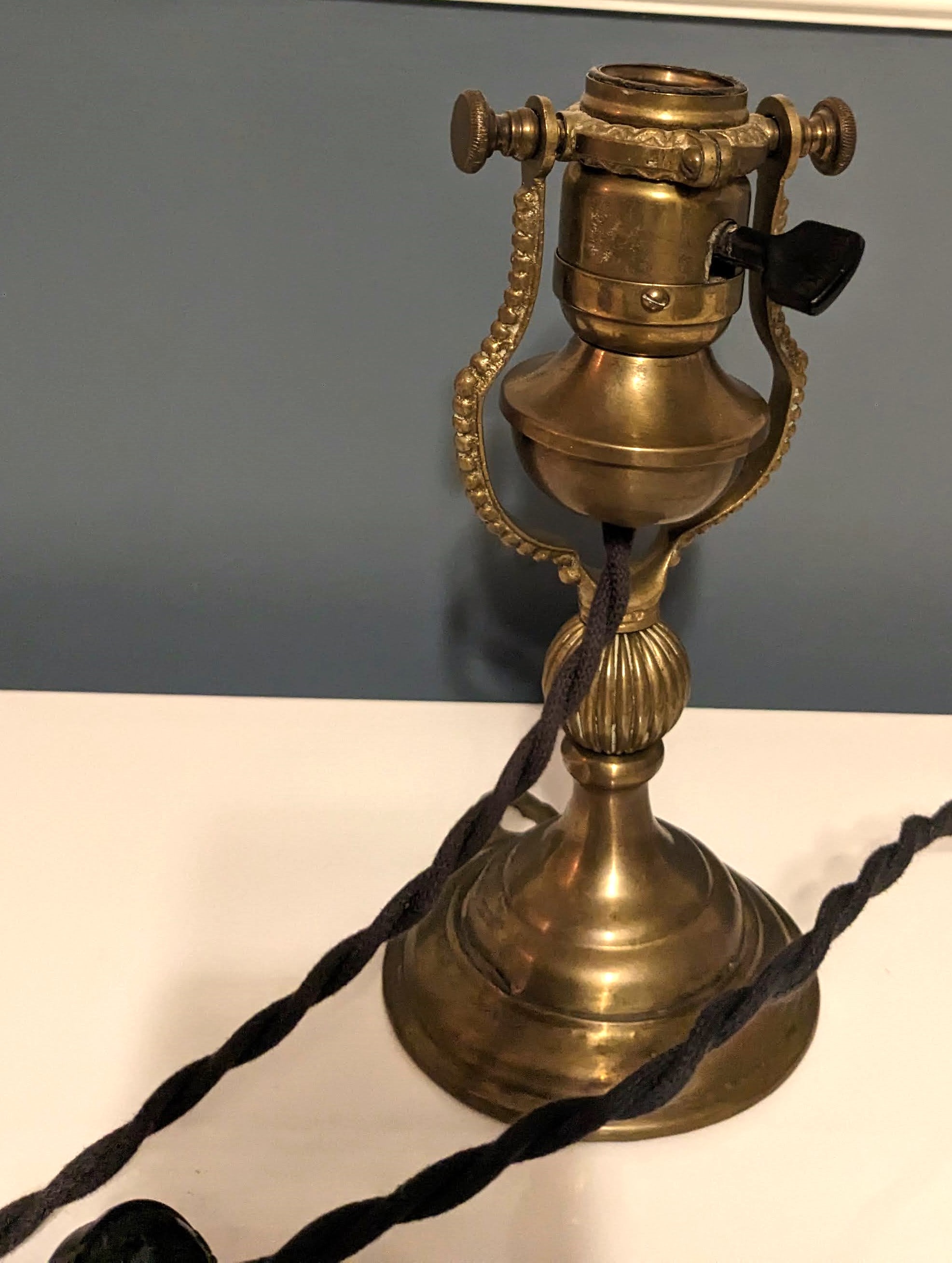 It is all original, except the new, period looking wire and plug. Great lamp that works very well. This one is special as it has an Edison stamped socket body with the original mica insert in the socket.