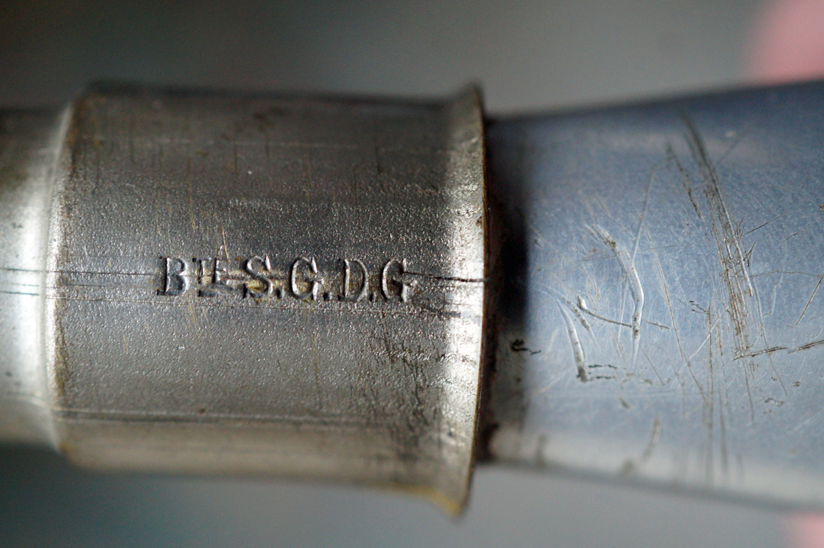 Brevété SGDG (¨sans garantie du gouvernement¨) is the French patent system used at the time - translated as ¨patented with no government assurance¨.