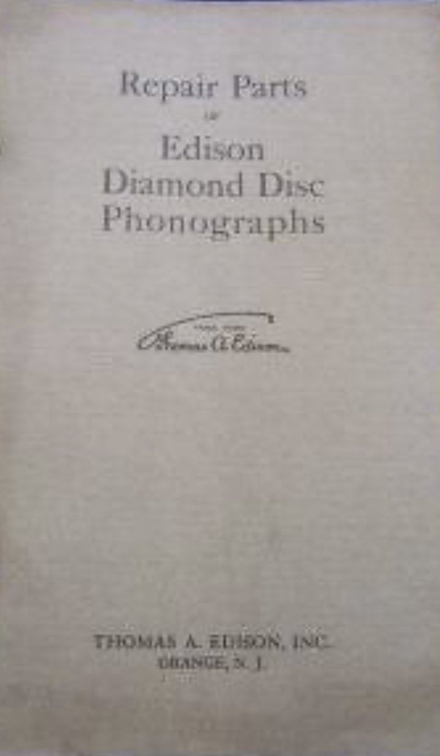 Re: WANTED: EDISON DIAMOND DISC REPAIR PARTS BOOK