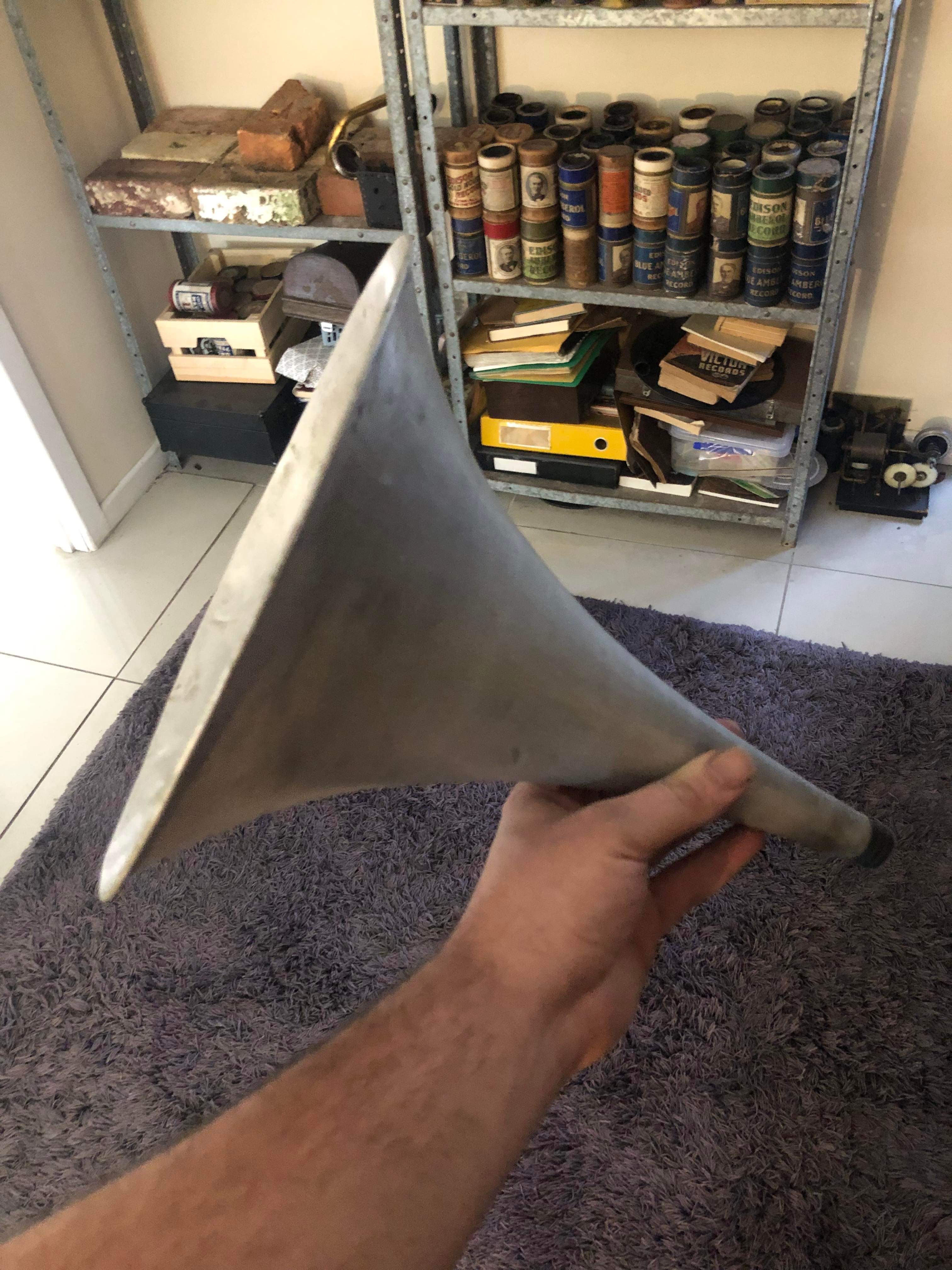 The only aluminum horns I have seen are Pathé . They started making them for phonographs, like the one in the photos, and kept making aluminum horns also for disc machines later on.