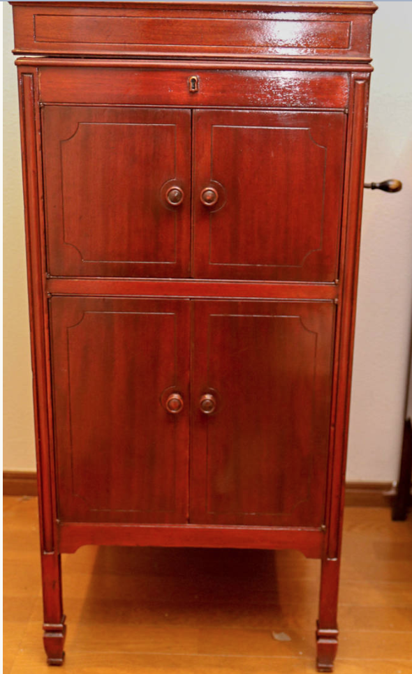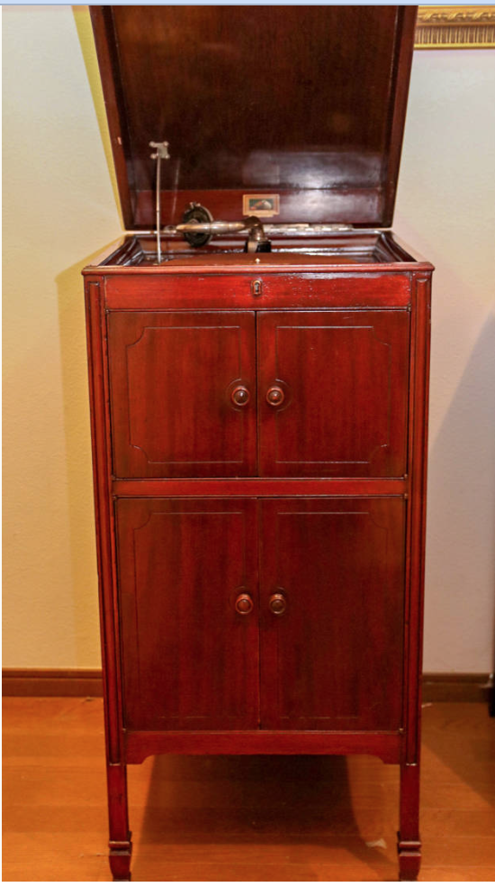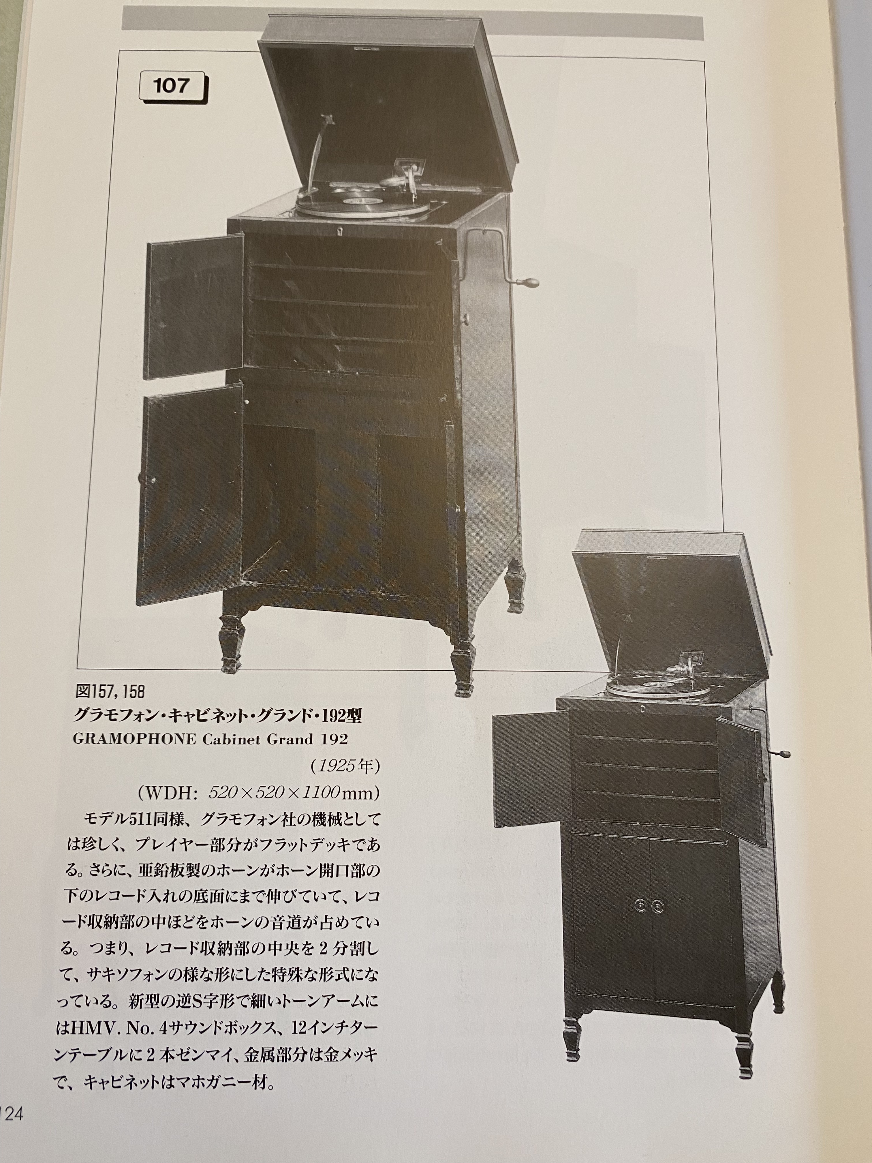 I found a photo of this model on the World Phonographs Book published in Japan. The center of the record storage is occupied by the long horn throat. It describes the horn is saxophone-style. Somebody should get it.JerryVan wrote: Wed Apr 19, 2023 7:32 pm Has this been cut down?