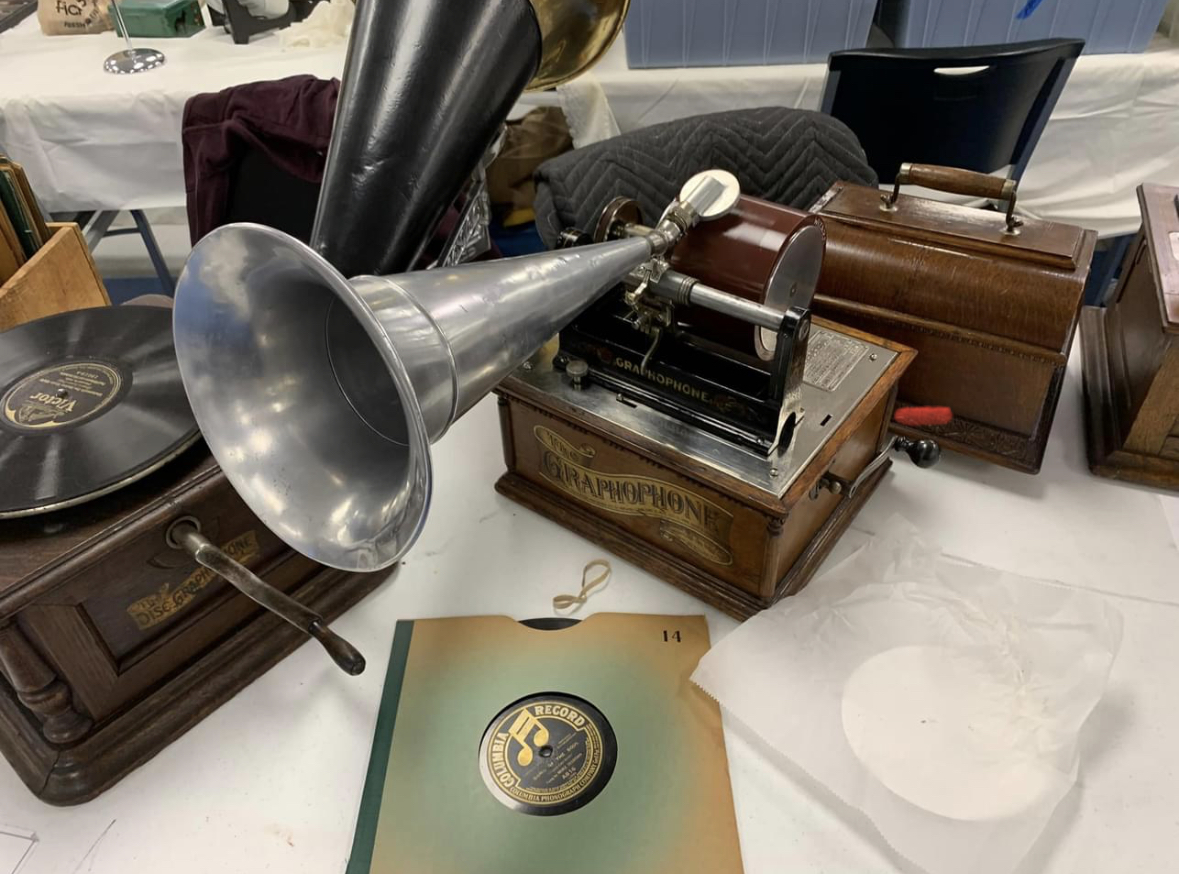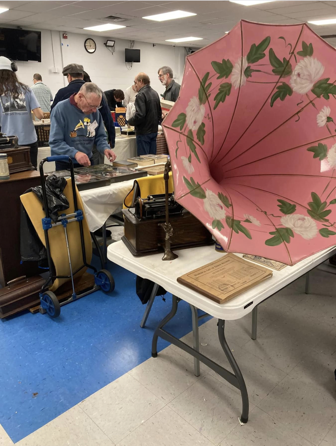 I'll add a few more pics-- Seemed like a good show- As usual, the record buyers were energetic-- I sold lots of cylinders and smalls-- reproducers, etc-- I didn't see a lot of machines changing hands, but i was pretty glued to my own sapce most of the day, so may have missed alot. Fun Time-
