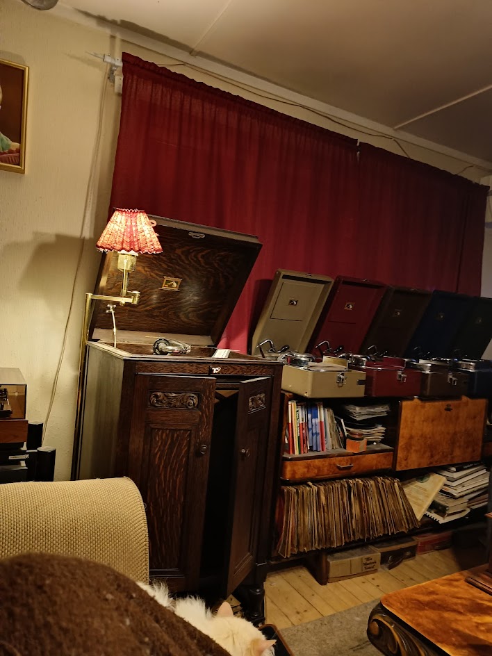 I now have an extra blue 99 bought last year, that I will put up for sale, since I don't need two, the one to sell is more scruffy than this one shown here, and has no record album, but the tone arm socket and no 16 soundbox is intact. I am considering putting it up in the sale section on the forum, for international buyers. One can by the way see this machine on this past thread. viewtopic.php?f=11&t=53794