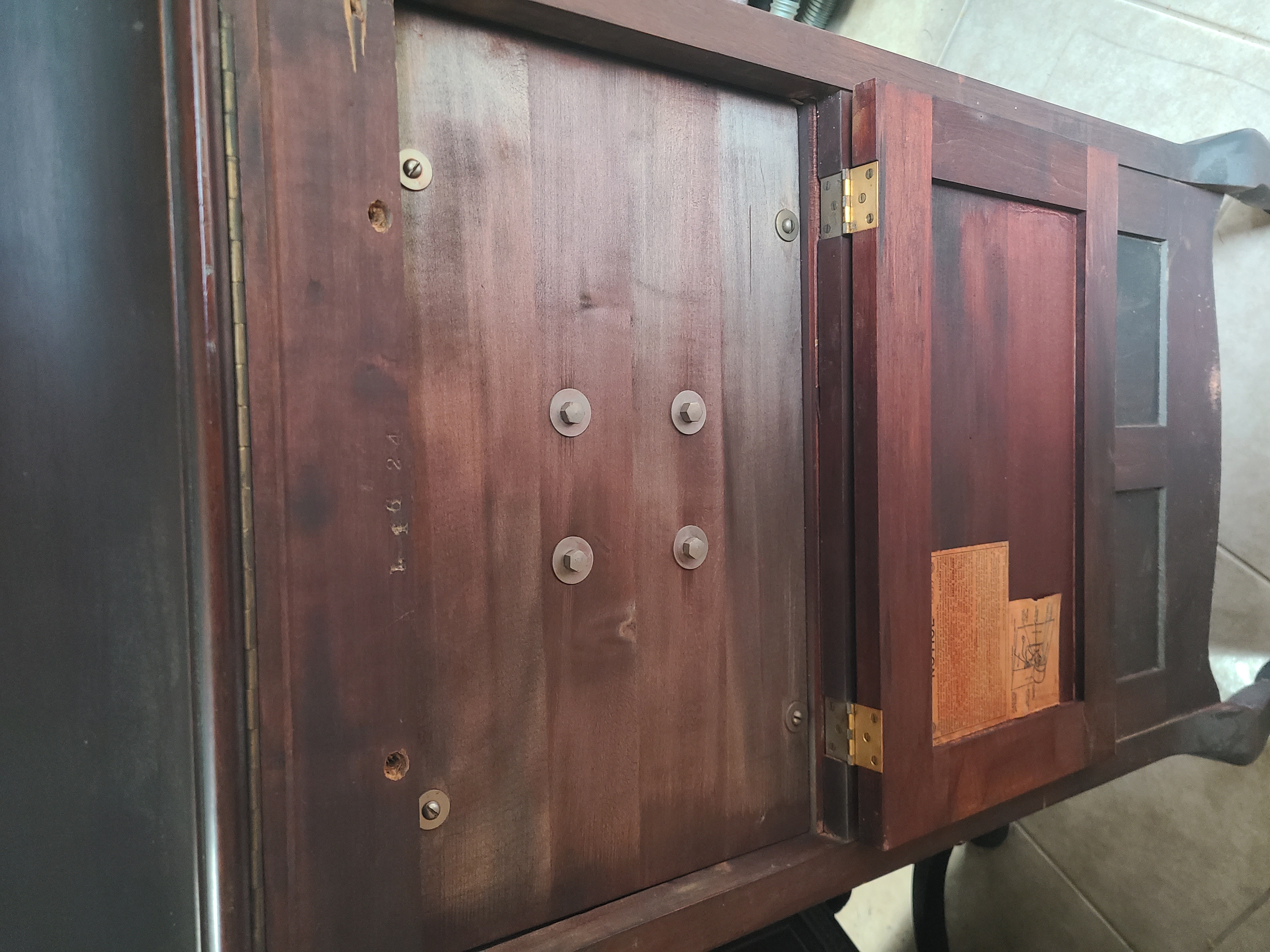 I just picked up this 1911 VV-XIV Victrola with Queen Anne legs and was curious to know if the internal horn installation is original. It's my first time seeing a solid wood board with bolts for securing the horn, when opening the rear panel. Is this normal or probably something a prior owner installed?