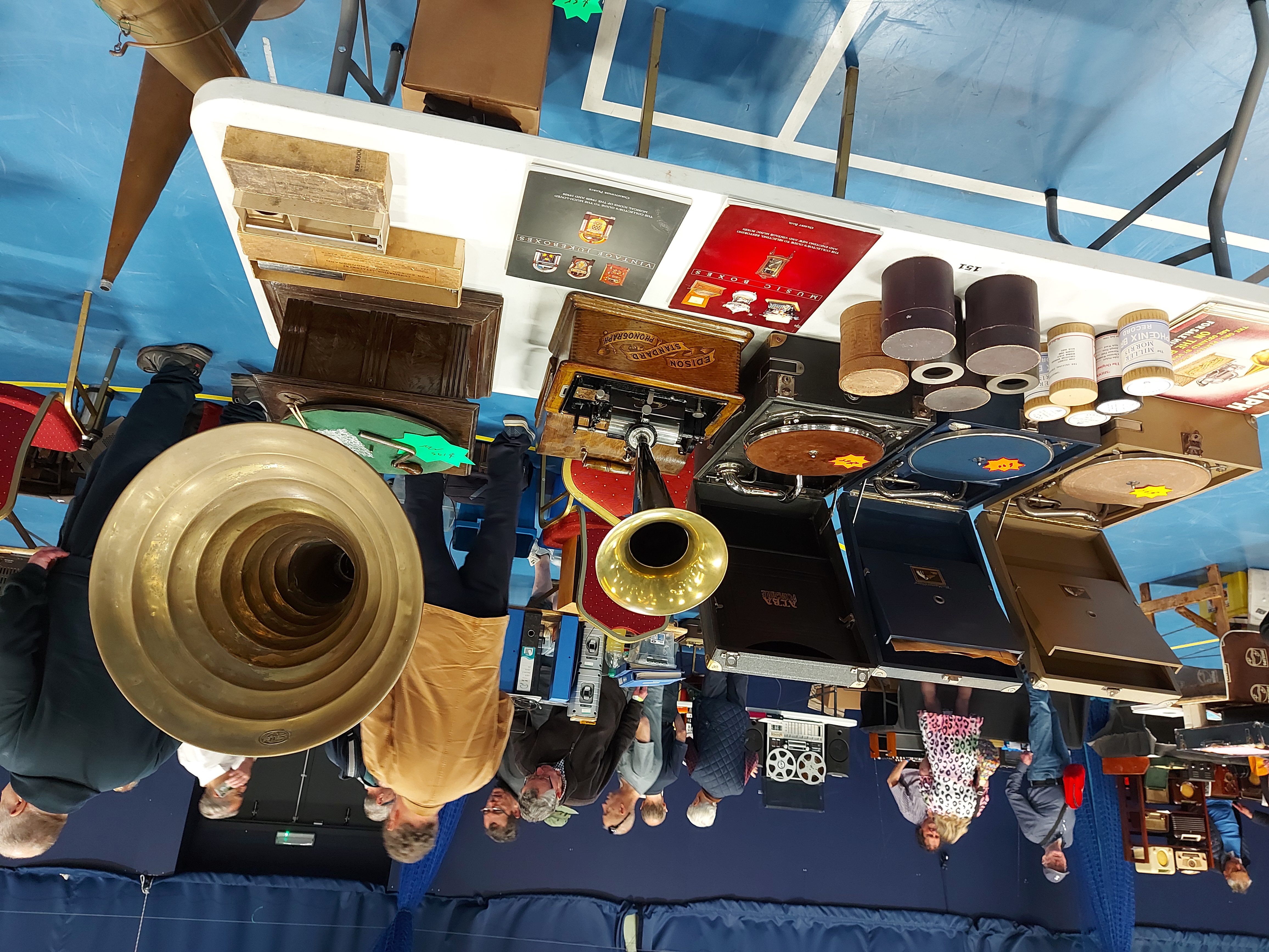 Yes, it is a fayre run by the British Vintage Wireless Society (BVWS) so there is a radio and electronics bias, definitely. I'm not sure what the silver horn you're referring to is? If its the Cockleshell Monarch, it's actually a repro brass horn highly polished up.CarlosV wrote: Mon May 22, 2023 3:48 pm Nice upside-down photos! (I have the same problem whenever I post photos here). The fair seems mostly directed to radios and associated electronics, but there were some interesting gramophones. I liked in particular the Monarch with the large silver horn, very imposing! Also interesting to see reel-to-reel recorders for sale - they were a mandatory component in every serious audiophile system in the sixties and seventies, and seem to have vanished even from the nostalgia zone nowadays.