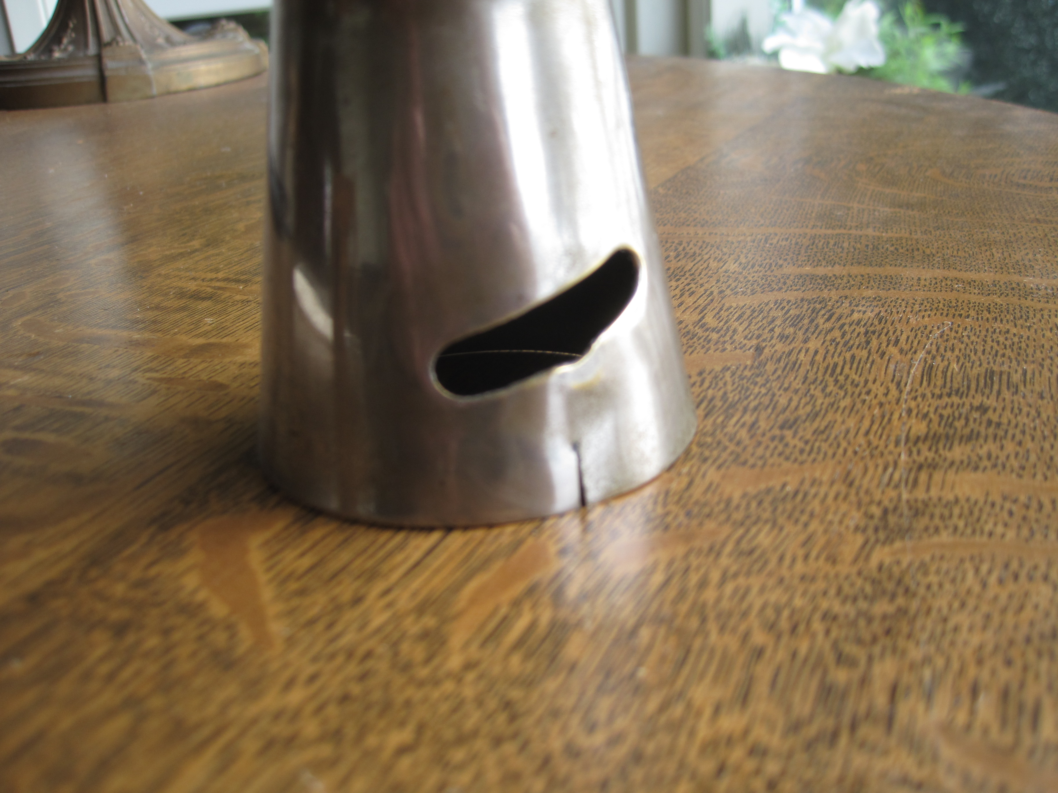Available for 120.00 plus 8.00 shipping, PayPal FF. Early pin style. Good nickel. Pretty much dent free. One dent next to the horn pin slot which also showed a separation. There is a slight warp on the bottom of the flange. Does not affect the function but needs to be noted. Have used for years as is with no problems. Not perfect but very presentable. If purchased and with item in hand wish to reverse the sale no problem, just will be out shipping both ways.