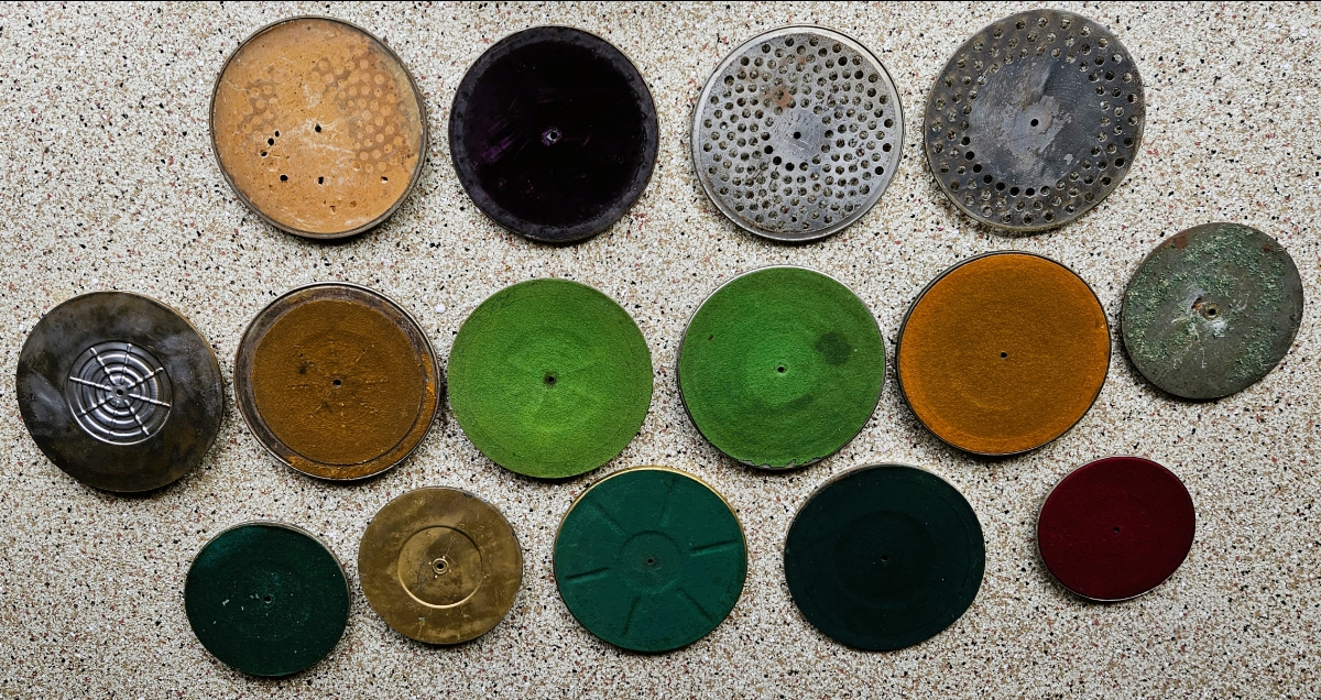 Assortment of 15 turntables for Columbia, Edison, Victor, Busy Bee, and ??