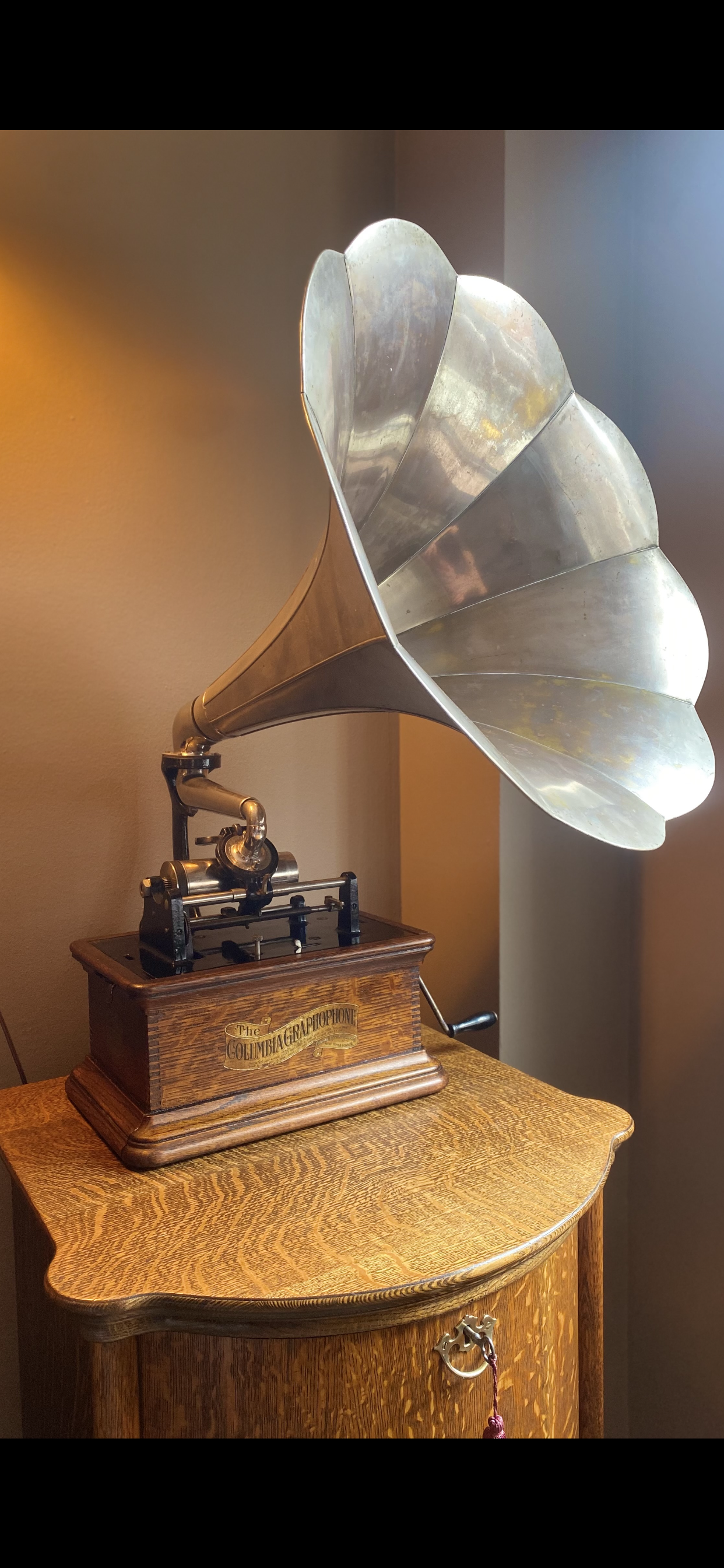 For sale is my Columbia BKT. It has a fully rebuilt reproducer from Wyatt Markus with a new diamond stylus. I re-did the motor and it runs wobble free and is practically silent. Photos are from when I bought it a little over a year ago… (the blue horn is on a different machine currently and I can’t get to it at the moment. Will upload photos Later).