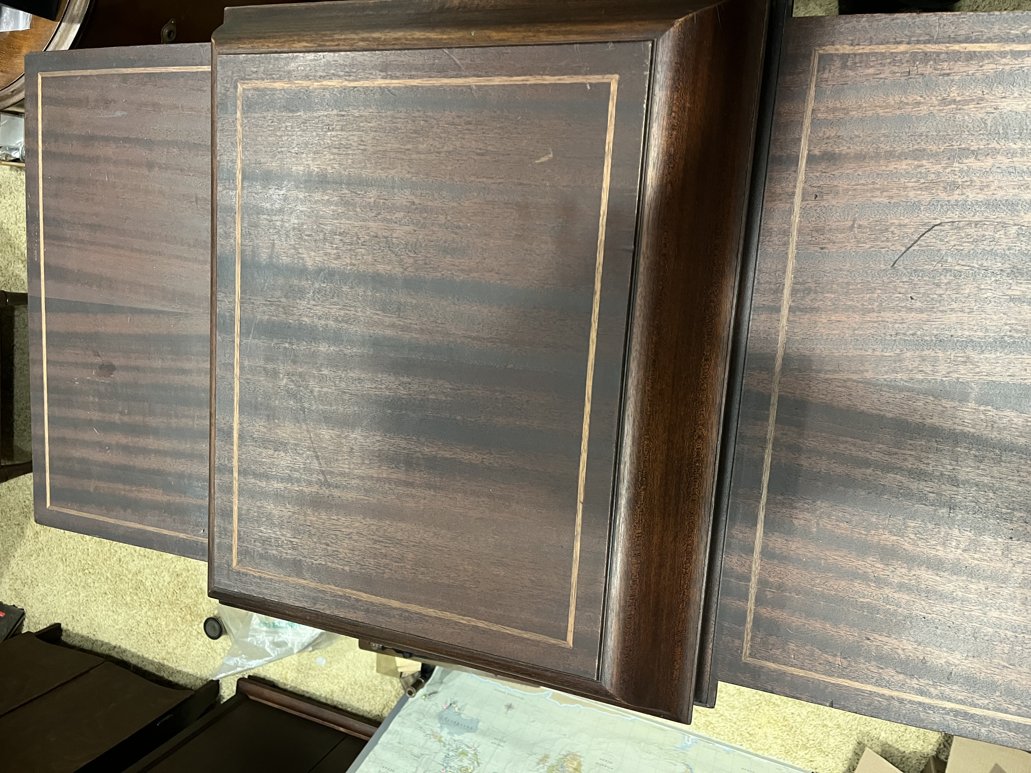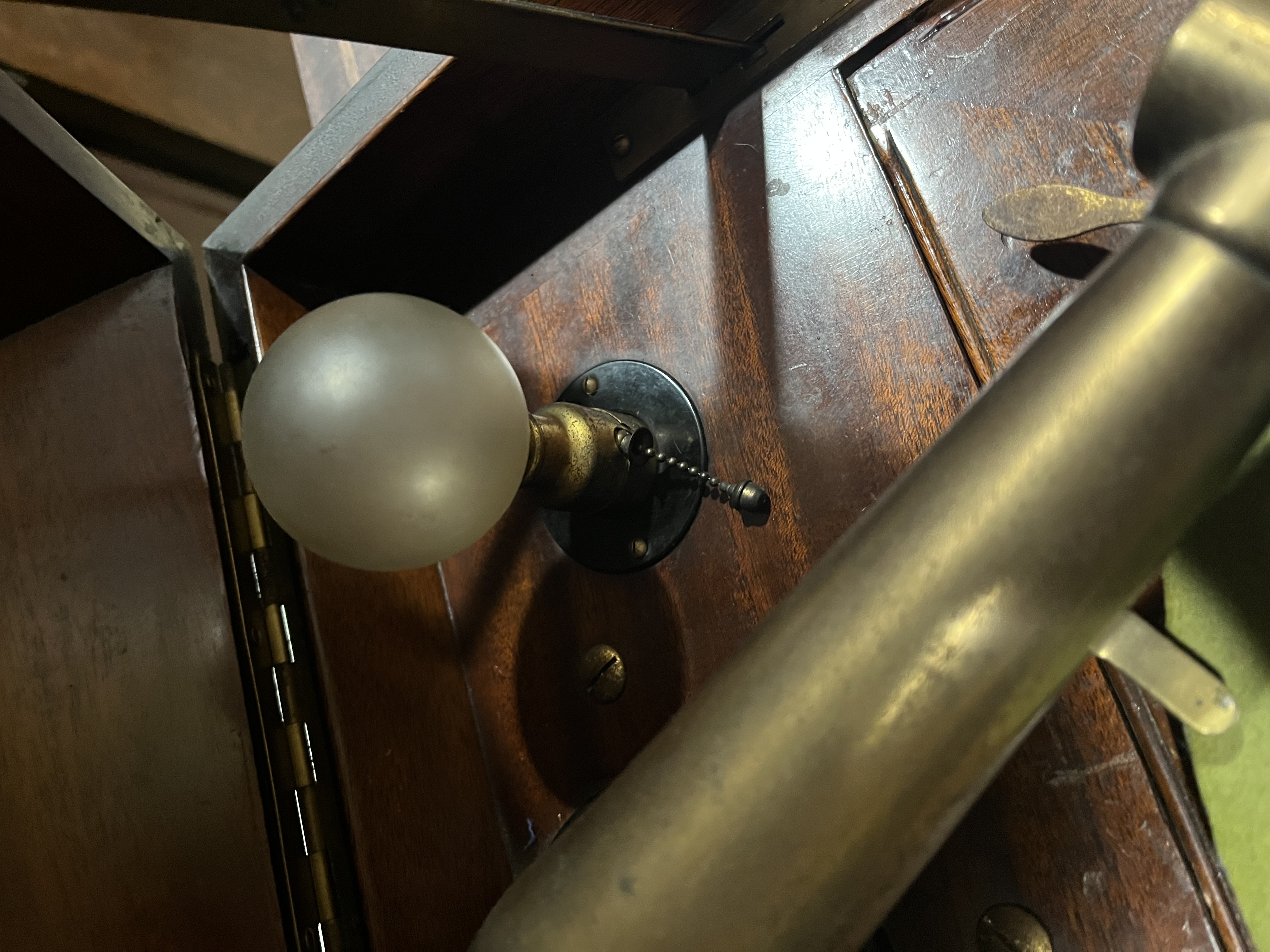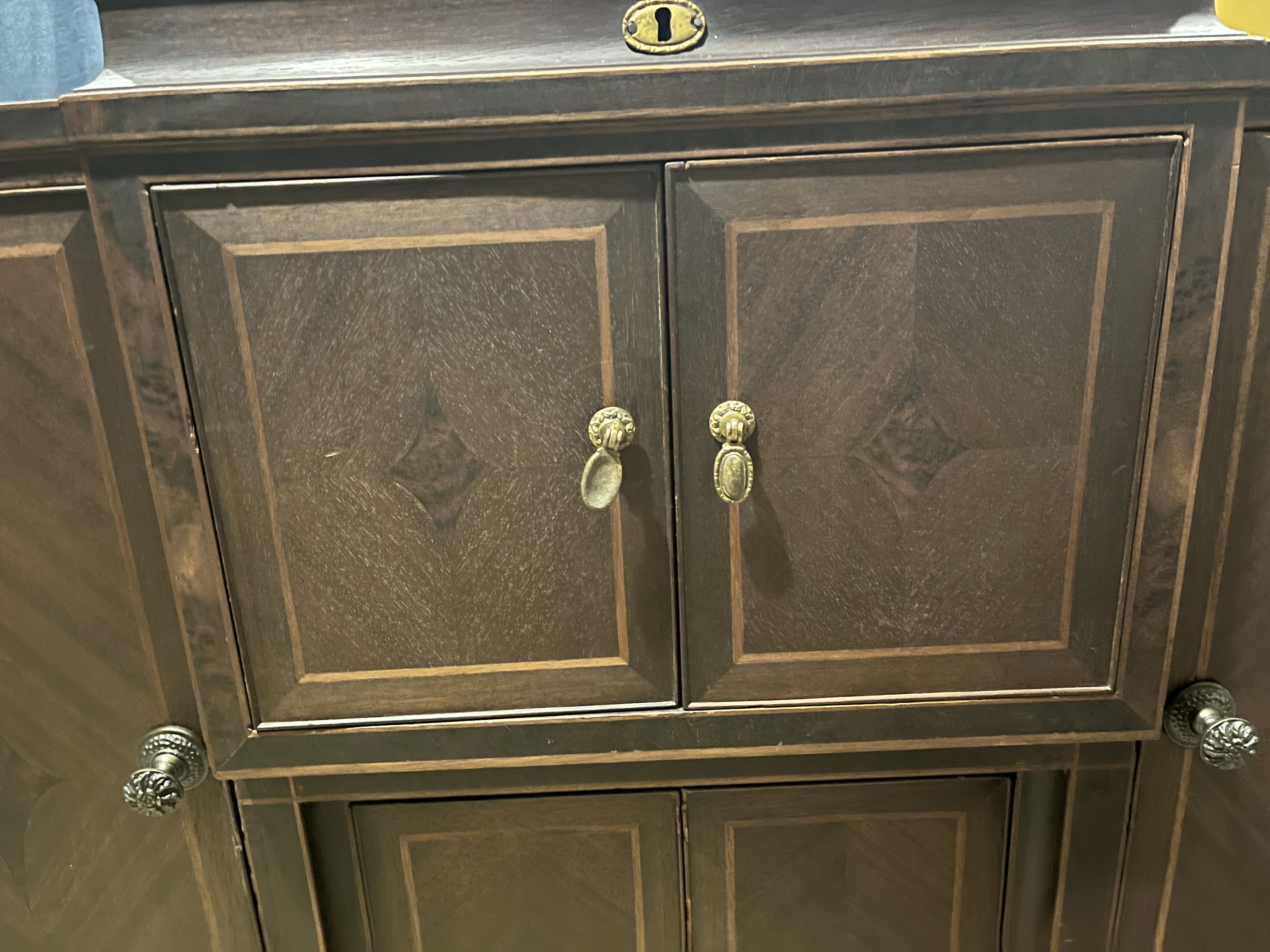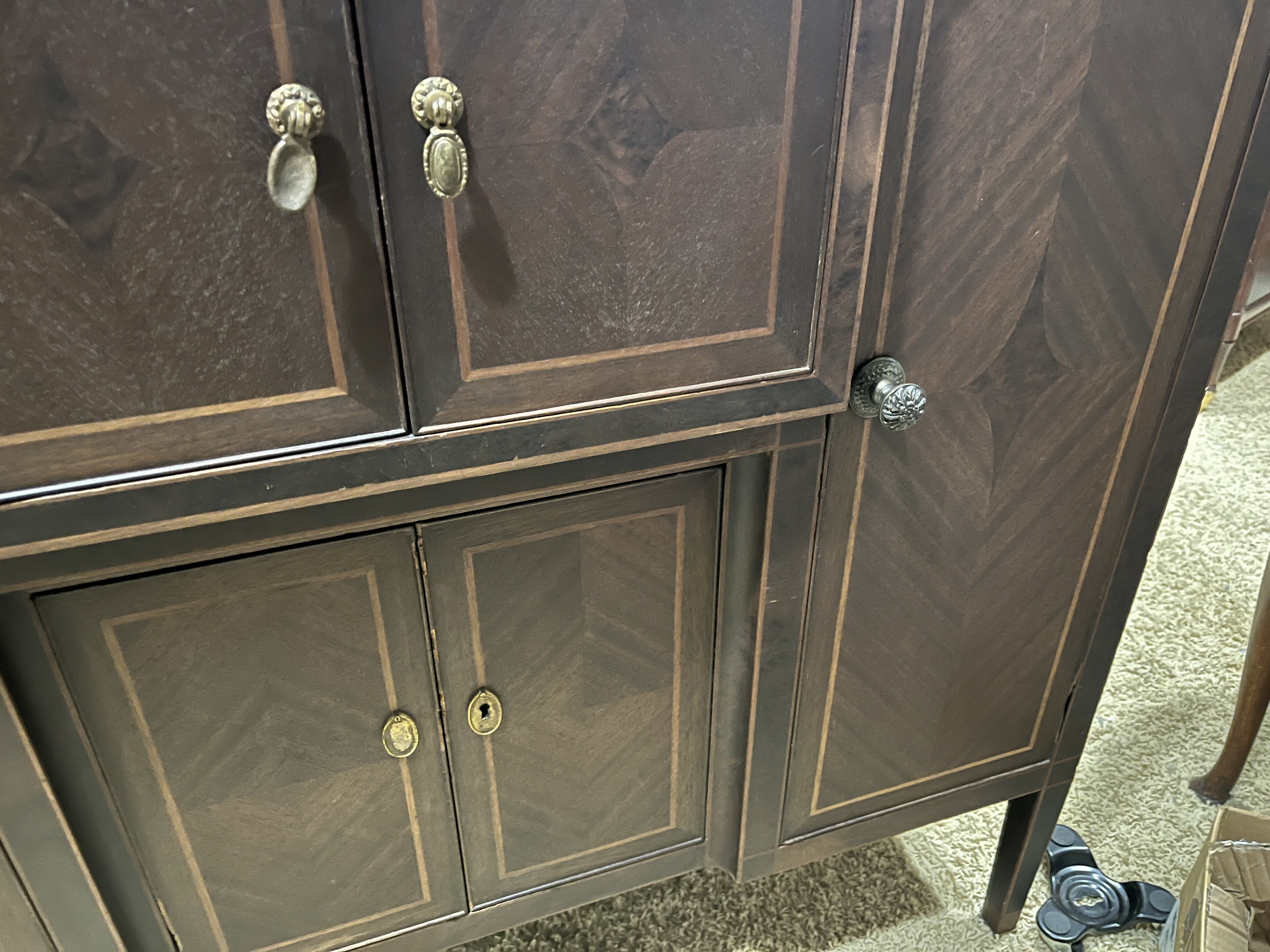 Cabinet it in good condition. Some of the piping around the doors is damaged and the door knobs are not original. Have not tried the motor but it does turn freely now after oiling.