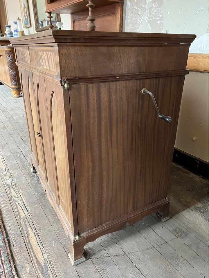 Never saw one of these before. Interesting set up with the horn opening under the lid next to the turntable. Love the record storage, but get the feeling that it's a lot of cabinet, and not a lot of sound.