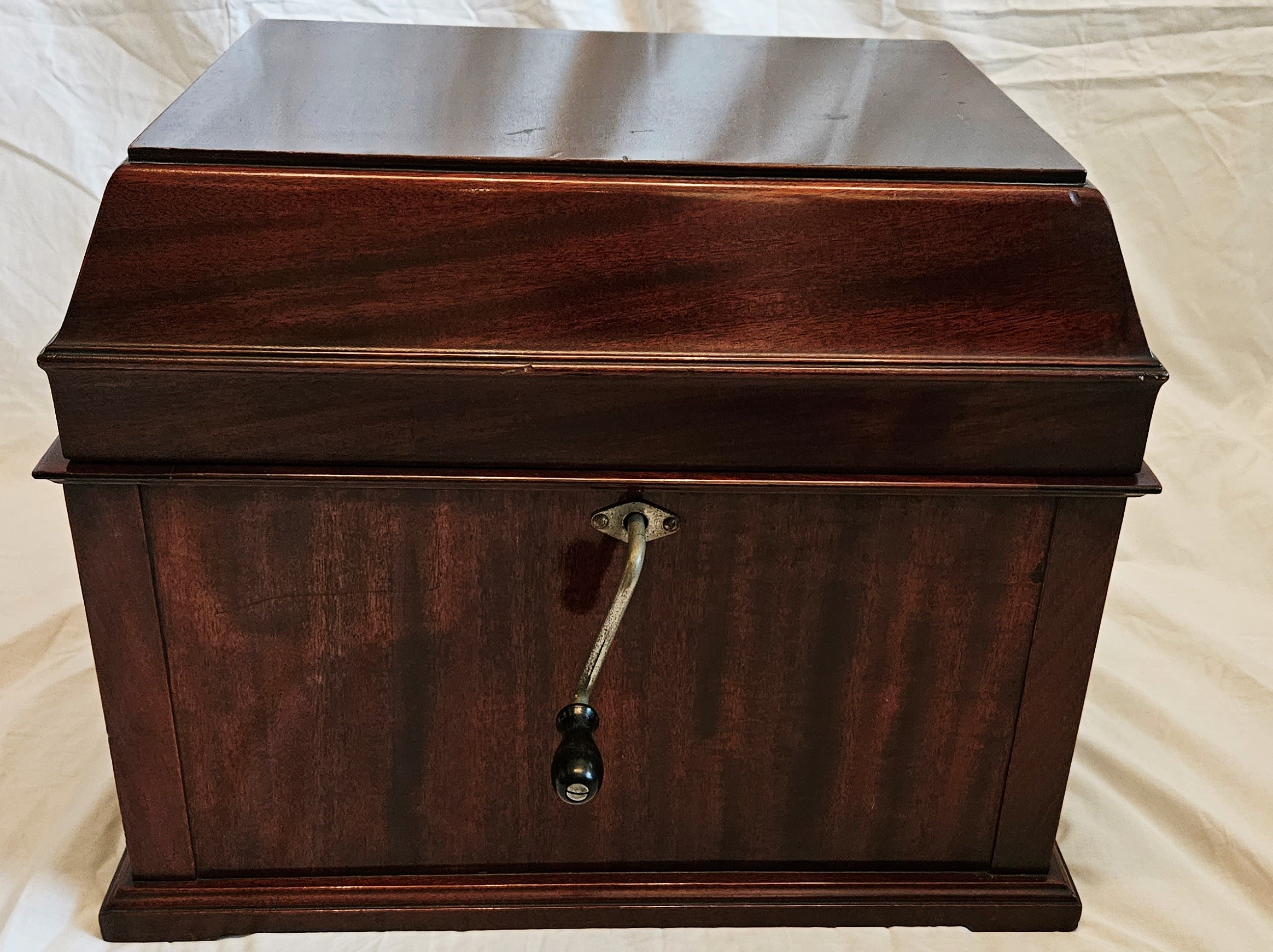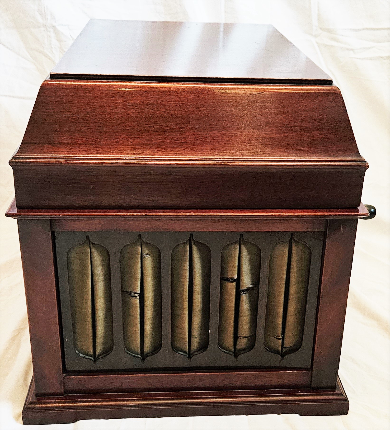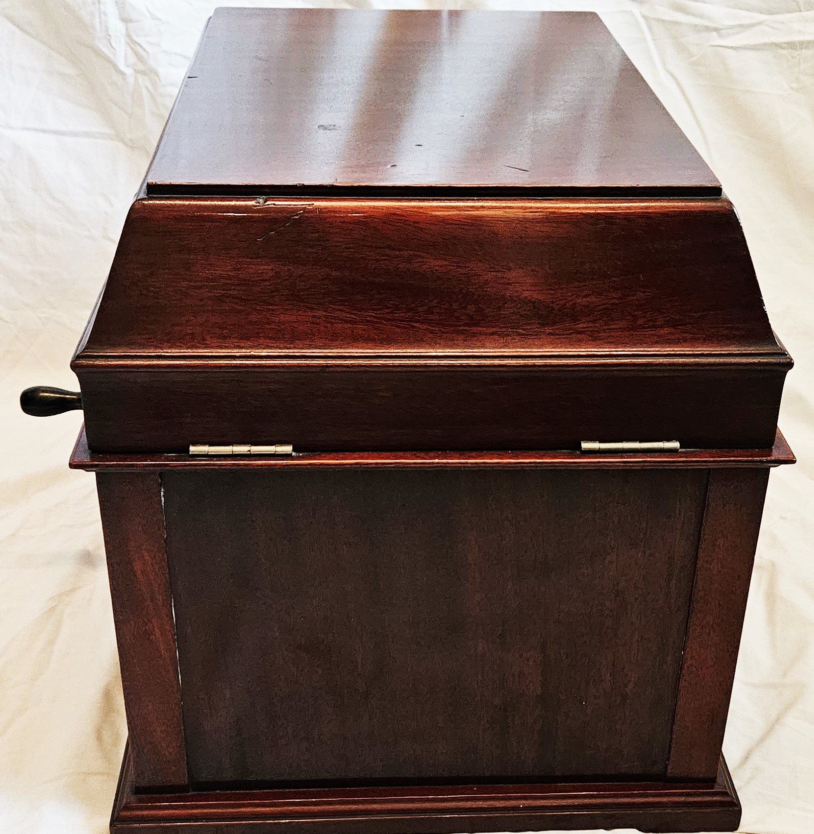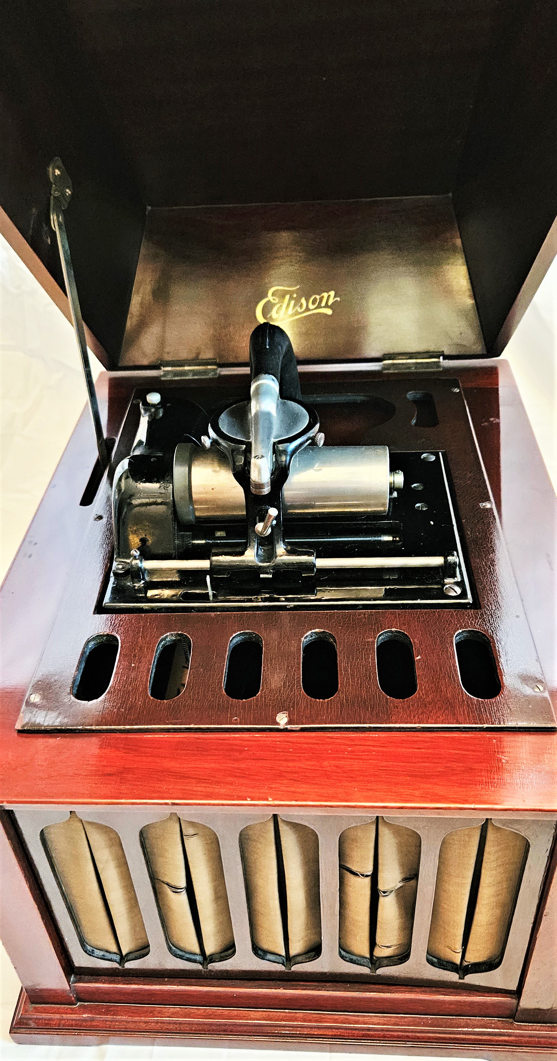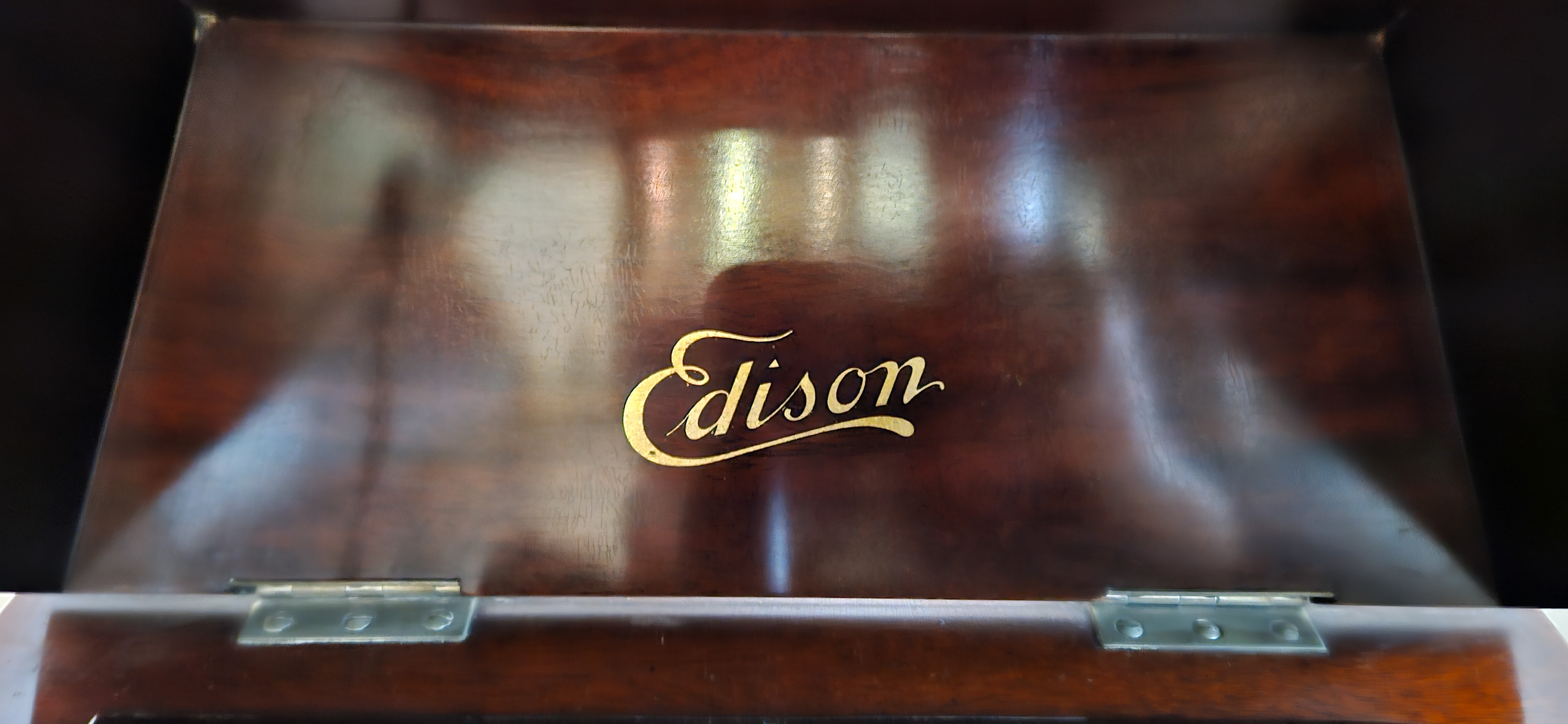 3 Edison Amberola 50 in mahogany, Serial #4822 This phonograph is in beautiful, all-original condition. The grille cloth is also original, with some minor tears, but so many examples have no cloth or a reproduction cloth. The Edison decal inside the lid is perfect. The phonograph plays loud and clear and looks great in person. Free delivery to APS show. Price is $550.
