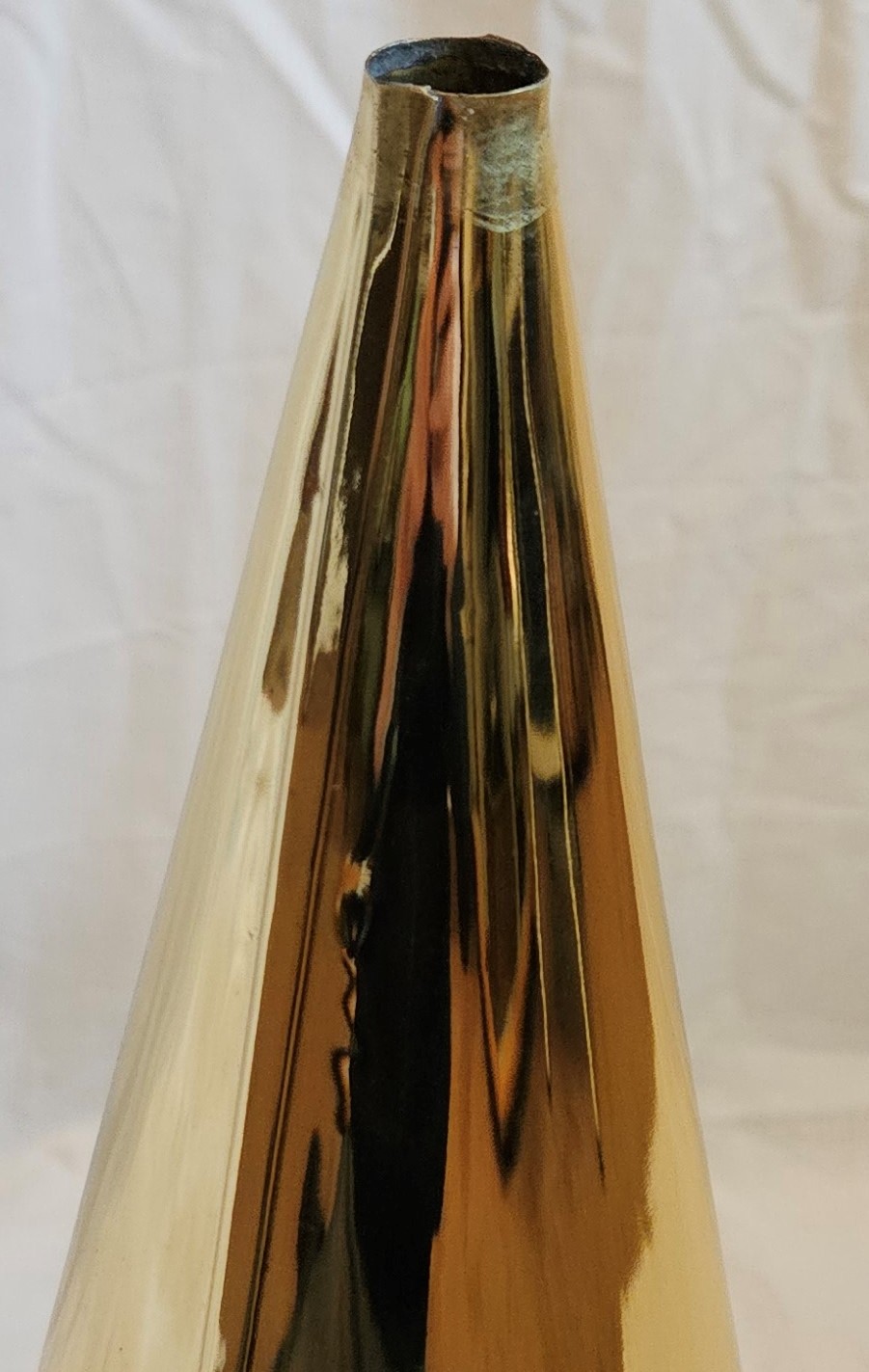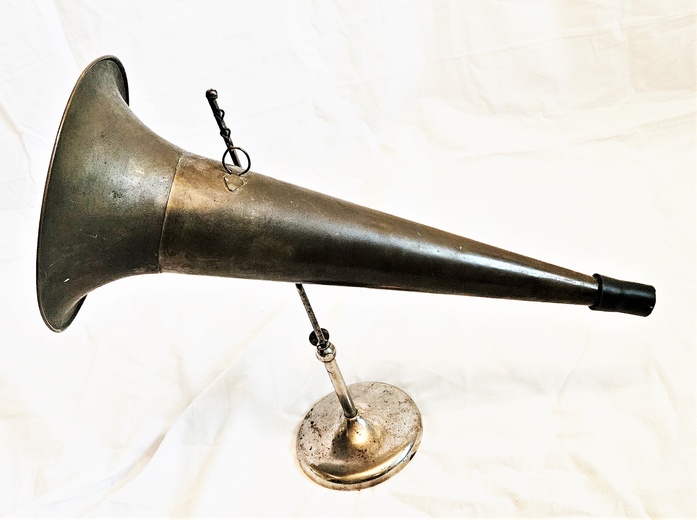1 20" Recording and Reproducing Horn No. 3 - Heavy brass, flared circa 1891. This is one of the earliest brass horns that would be perfect for your Edison Class M, Bell-Tainter, Columbia N or any other early to mid-1890s phonograph. The condition is just awesome - clean and nearly dent free. Anything that may look like a dent is just light reflection. The nipple which connects to the reproducer has been cut down some. A rubber connector hides this perfectly. Free delivery to the APS show. Price is $1400