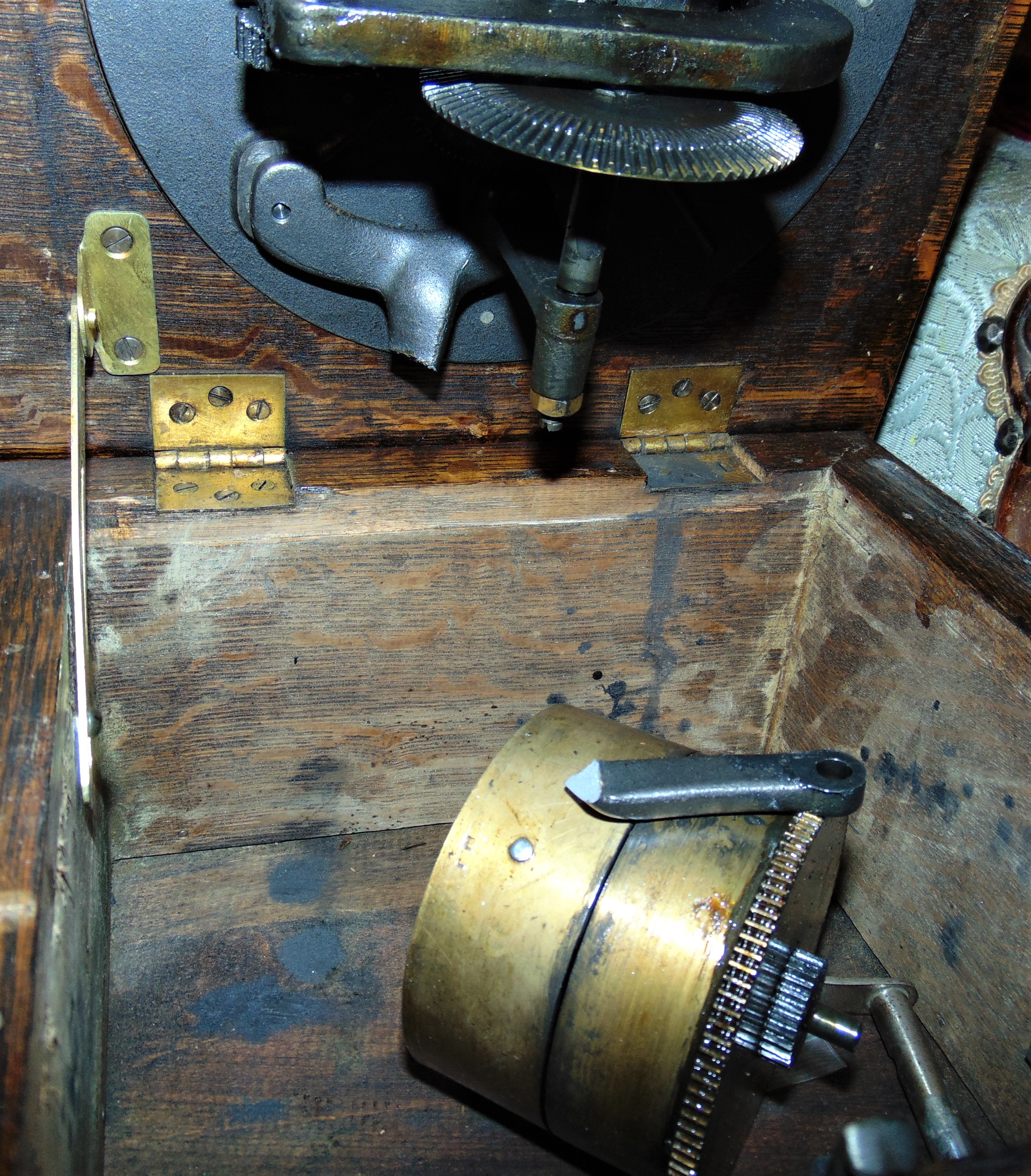 This E has a broken motor casting and I've not really had any luck with welders around here and cast iron. Anyway, it's a worthy project and someone might have the casting from a motor that they could use to sort this one out. It's a pretty nice machine otherwise and I kind of hate to part it out. I really don't know what else to say about it as the pictures pretty much show the whole machine. The crank is old, but has a strange repair to make it longer however the record hold down is a reproduction. Someone kind of put a lot of work into that cranks to make it longer for some reason. And I would also not like to have to deal with paypal. A check will be just fine. If you have any questions, or if you'd like more pictures do feel free to ask. Thanks now,