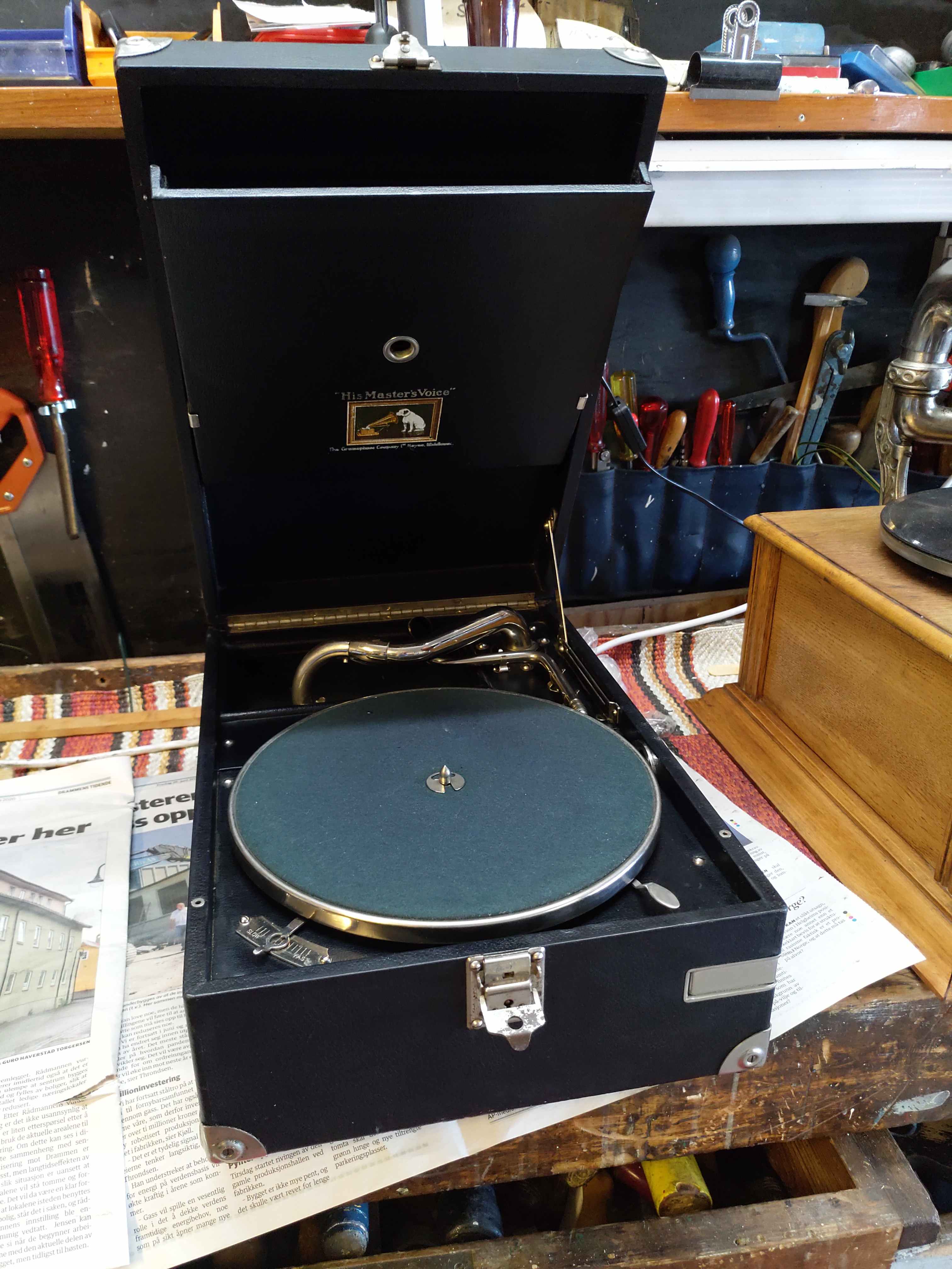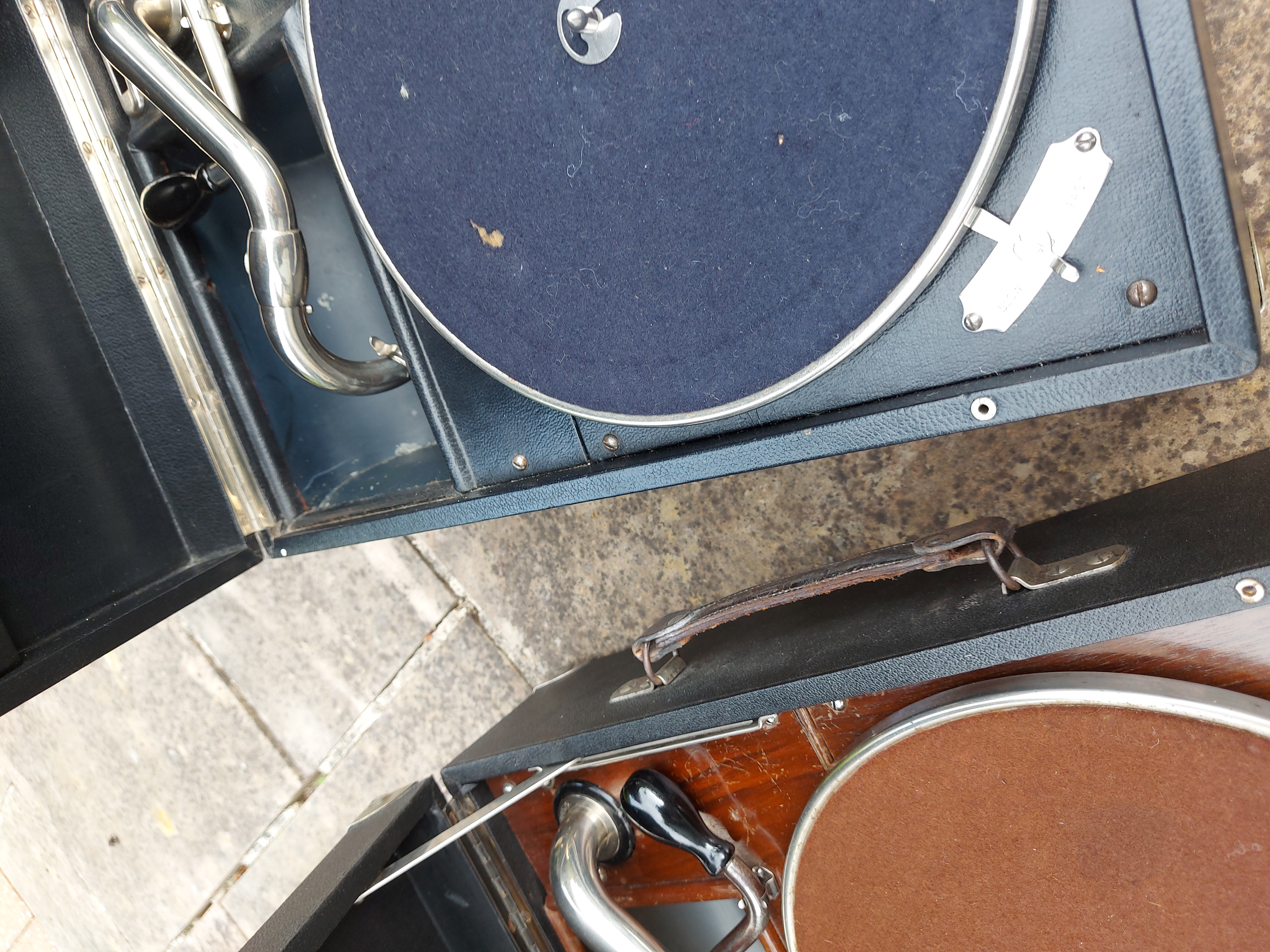 Well, I'm not sure what you mean because the obvious difference to anyone is the fact that the dark blue 101 had a rexine interior and not a wooden veneered motorboard, surely, not to mention a blue horn and turntable felt. Also, yes, all colour case versions had nickel (later chrome) fittings externally whereas the contemporary black had all black fittings. Only the early front winder i believe had nickel fittings as shown in my photo. My dark blue one has a lid catch and pakawa handle painted black by the previous owner to disguise the surface corrosion and loss of plating. As I said previously he had no idea it wasn't even a black case! The faux pas is forgivable given how dark a blue it is.