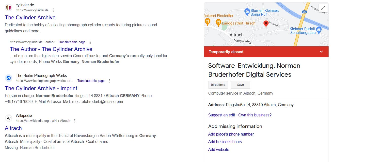 I contacted Norman Bruderhofer several months ago about purchasing a copy of what was his latest cylinder that had a song recorded by Ermine Calloway. He told me to check in with him in a few months to see if he had produced more copies of it. I can't find his website anywhere and the link I had doesn't come up anymore. Does anyone know if he is OK and if he's still producing cylinder records?