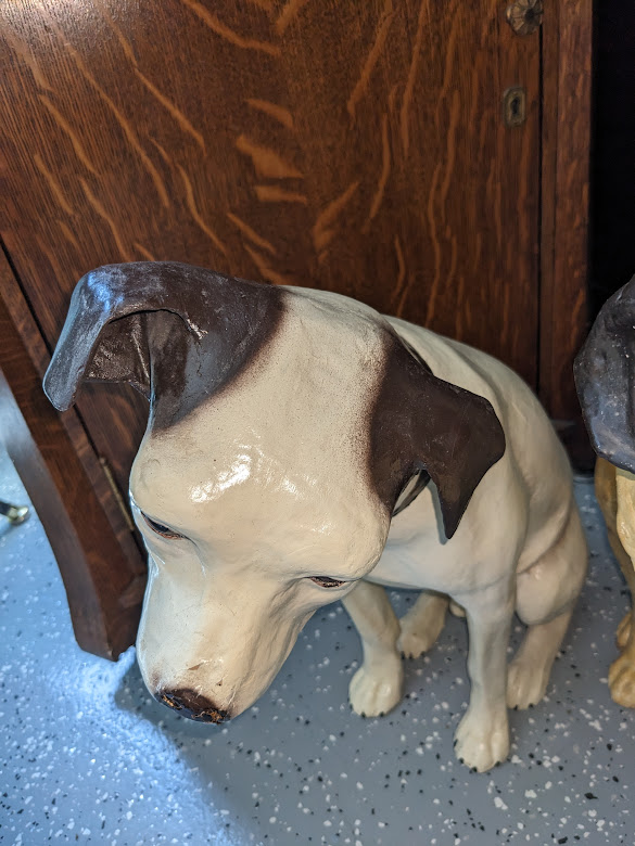 Here are a couple of Nippers. The ears differ slightly between the two. But I suspect the lighter colored one has had some work done to it besides being repainted. Or maybe there was just some variation between Nippers when they were made.