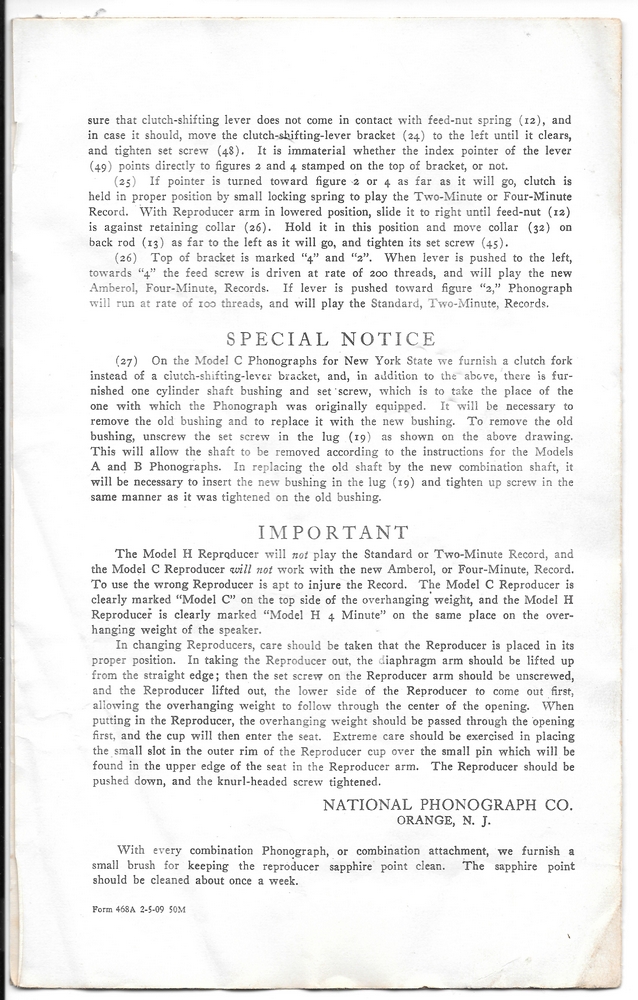Here are images of the Edison Home A, B, and C installation instructions from the National Phonograph Company (Edison). This should at least get you started.