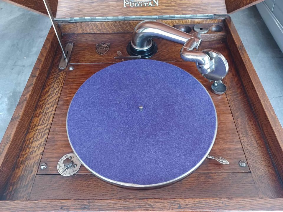 Did they advertise them with a period style name along with the number? I ask because the first Puritan models launched in 1917 were advertised with names and not model numbers.Pathé Logical wrote: Mon Jul 17, 2023 9:38 pm This Puritan model was actually a precursor to the Baroque, and is known as the No. 200 (see ID tag in advert.) Going by what I've observed in the past, nickle-plated hardware seems to be standard on this model. The later Baroque had gold-plated hardware. BTW, the smaller, bowed Puritan Artline also had gold-plated hardware, but its predecessor (No. 100) had nickle-plated hardware. I don't think the tonearm and reproducer are correct on the machine in the advert.