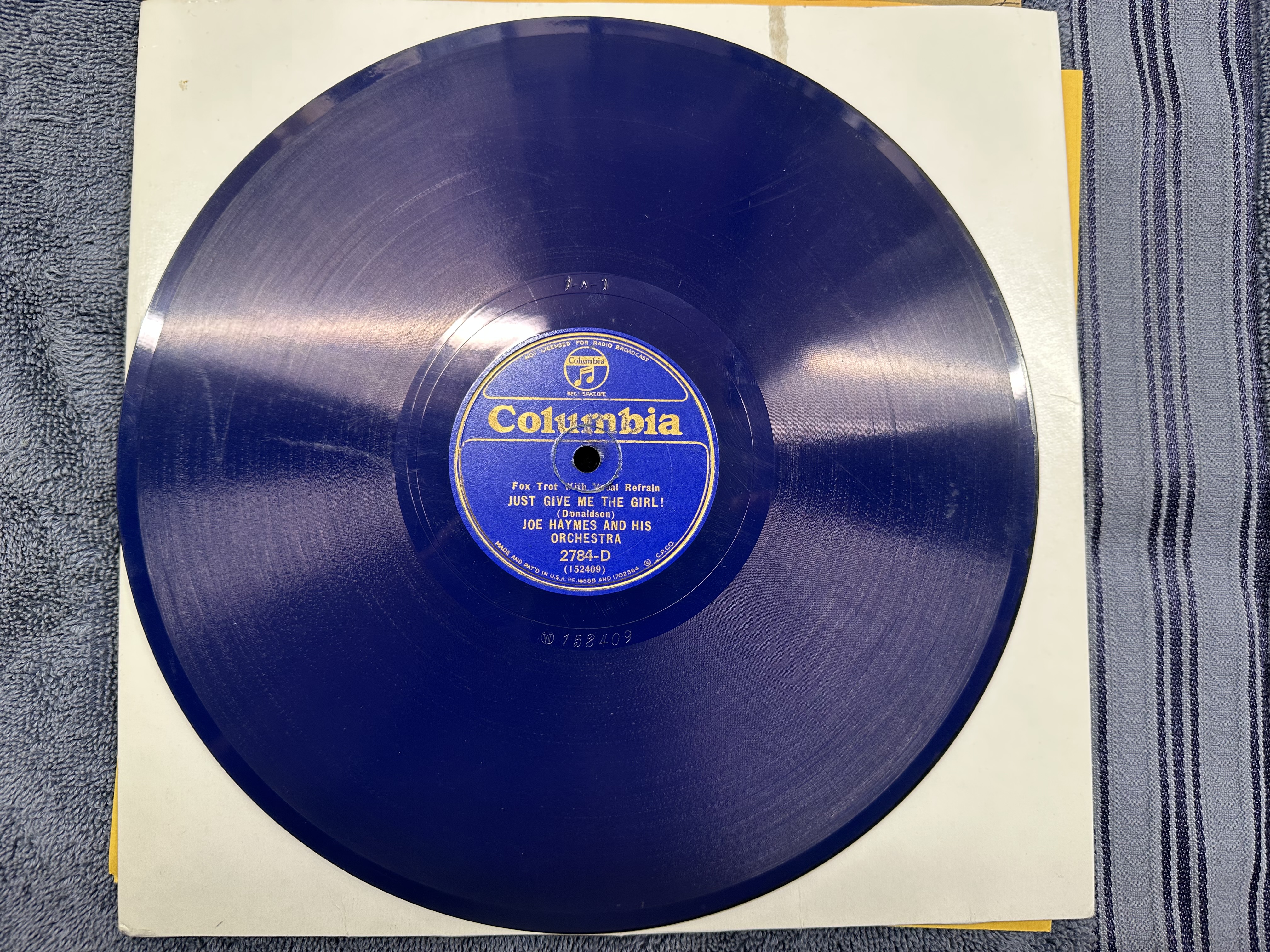 11. Columbia 2784-D, Royal Blue, Joe Haymes Orch., "I Ain't Gonna Grieve No More" / "Just Give Me The Girl!" Haymes had an incredible ground- breaking band before Tommy Dorsey either raided him or bought him out (versions differ) in 1935. Visual E that plays as new $45