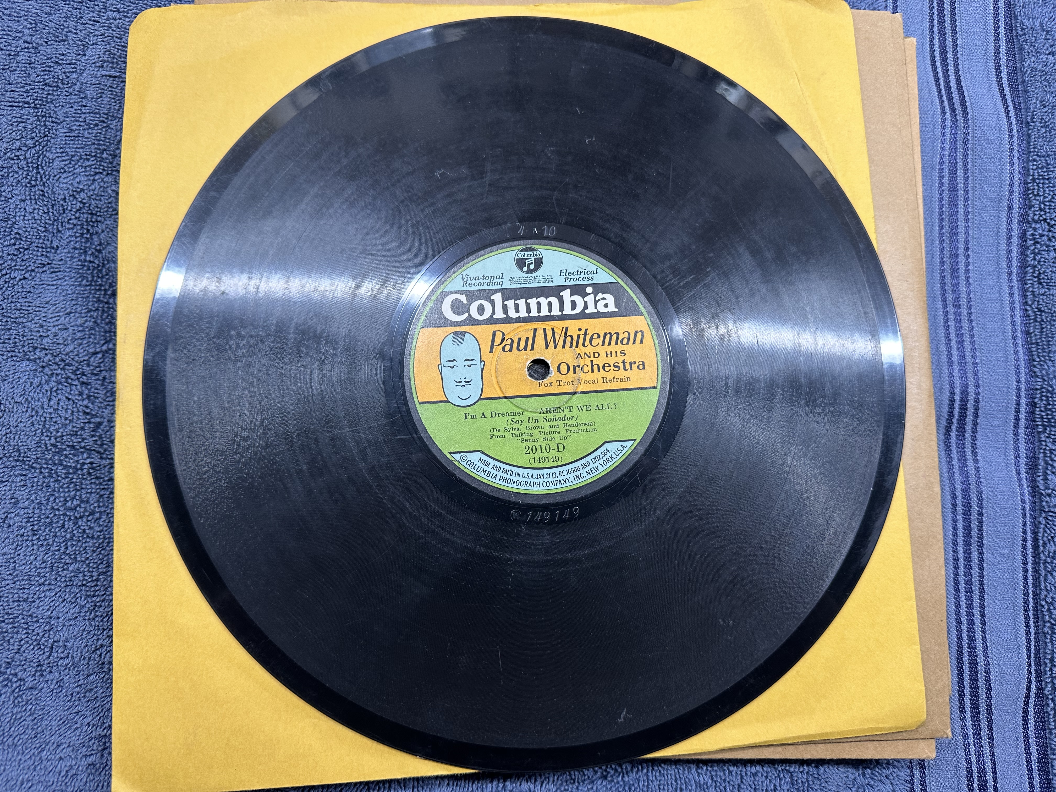 4.Columbia Potato Head 2010-D, "I'm A Dreamer" / "If I Had A Talking Picture Of You". Great hot B with Bing. Visual V+ plays E. $15