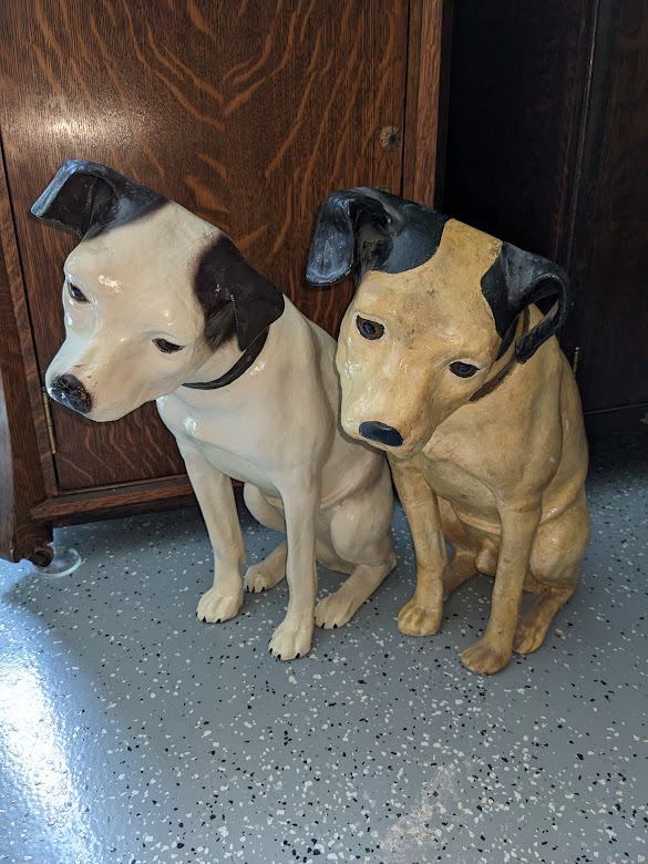 Here are a couple of Nippers. The ears differ slightly between the two. But I suspect the lighter colored one has had some work done to it besides being repainted. Or maybe there was just some variation between Nippers when they were made.